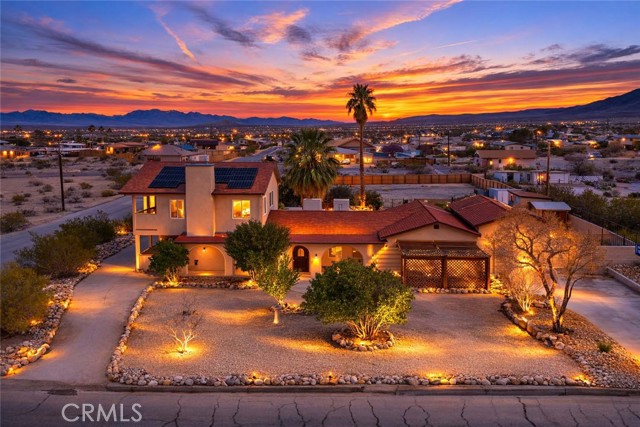 Welcome to 7565 Sherman Hoyt Ave in Twentynine Palms, a stunning two-story home offering incredible 180-degree views stretching from Big Bear and the San Bernardino Mountains to Goat Mountain, Landers...