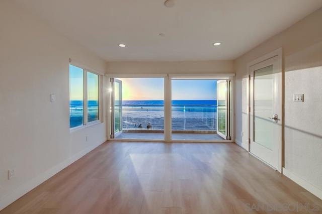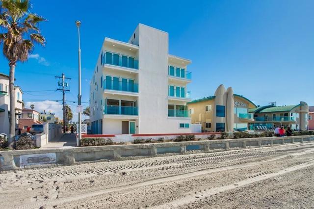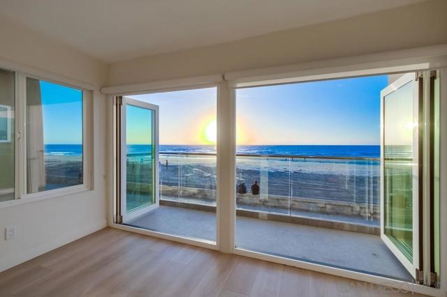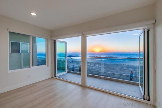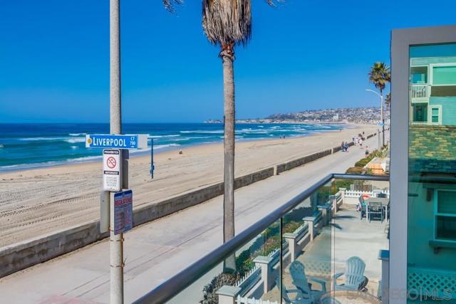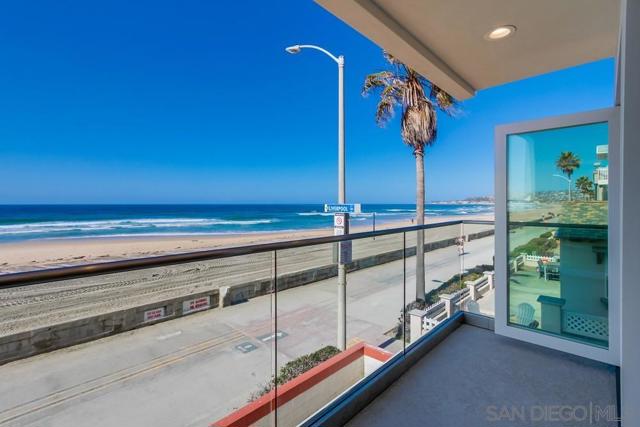 RARE TROPHY ASSET—the only 6-unit, 4-story oceanfront building in Mission Beach with no HOA and white papers in hand for a condo map. Six identical 2 BR / 2 BA ~1,100 SF residences span an irreplaceable 30 FT-wide lot, crowned by the ONLY 2 true 4th-floor penthouses in MB—soaring above the 30-ft height cap for panoramic surf-to-skyline views AND the bay! From studs out, the property underwent a $2 M+ fully permitted rebuild (2023): new roof, plumbing, electrical, HVAC, structural beams and framing, impact windows, glass sliding doors, smooth stucco, designer kitchens, spa baths, Euro-oak floors, and glass balcony railings that vanish into the horizon. Garage yields 8 on-site parking spaces (All single no tandem) plus shared oceanfront patio directly on the boardwalk AND each unit has its own oceanfront balcony + back balcony facing the bay. Operational flexibility & upside: • Vacation-rent all 4 upper units for maximum cash flow—pro formas exceed $760 K GSI. • Maintain existing two long-term leases in 2nd-floor units to preserve Tier-2 STR permits, while operating the top four as premium short-term rentals. • Sell-off strategy: activate the condo map and disposition units individually in a high-velocity market hungry for turnkey new build oceanfront condos. No HOA dues, no deferred maintenance, and no comparable site left to build. Whether held as a legacy multi-family asset, operated as a boutique luxury rental stack, or condo sales for immediate profits, 3449 Ocean Front Walk offers a once-in-a-generation chance to control the trophy of Mission Beach.
