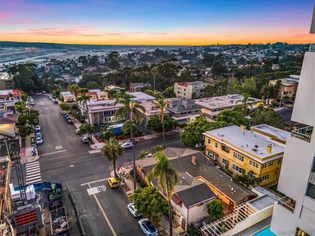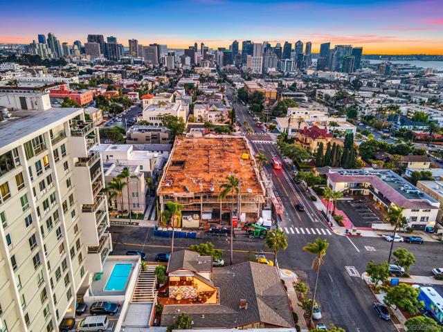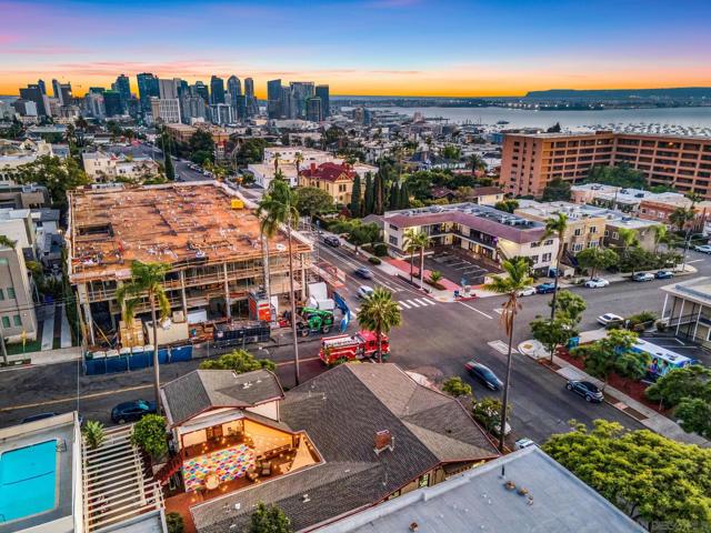 Incredibly rare mixed-use property located at the prestigious corner of 1st Ave and Maple St, just steps from Balboa Park, Mister A’s, and surrounded by some of San Diego’s most beautiful historic homes. This trophy asset sits in the heart of Bankers Hill and offers a unique combination of commercial and residential zoning—allowing for unmatched flexibility and long-term upside. The front corner unit, which resembles a classic home, is leased to a professional office tenant under a long-term agreement with built-in annual rent escalations. The remaining four units are a mix of Airbnb and long-term residential tenants, all of which have been extensively remodeled. Two units were completely rebuilt from the ground up in 2024. Major upgrades include all-new electrical, plumbing, insulation, HVAC systems, new electrical meters, and a state-of-the-art fire sprinkler system throughout. Each residential unit has been professionally designed and furnished, offering strong rental performance. The upper unit enjoys bay views, and all tenants share access to a beautifully landscaped common courtyard. With dual street frontage on both 1st Ave and Maple St, this is a true pride-of-ownership asset with rare mixed-use appeal in one of San Diego’s most coveted neighborhoods.