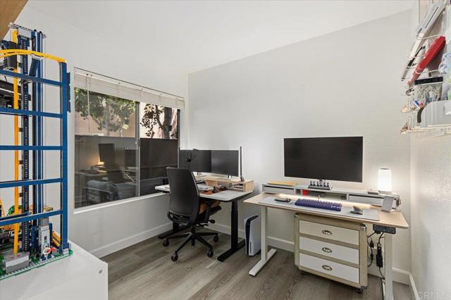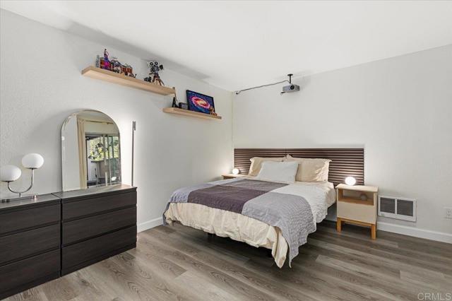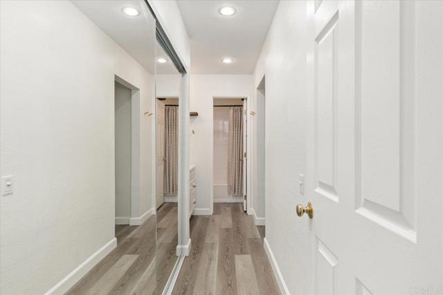 Welcome home to this spacious, clean, updated 1 bedroom, 1 bath lower-level condo. This is one of the largest one-bedroom condos in Mission Valley at 726 square feet! Oversized bedroom with prior flex space was made into a private office area with the addition of a wall. Uses could be an optional small 2nd bedroom, a den, or home office space. It’s a great extra area and perk to this well laid out condo. Kitchen has granite counters and freshly painted cabinets. Large mirrored closet doors in the hallway provide additional storage space. Private outdoor patio is great for enjoying some quiet time or relaxing. Condo is in the middle of the complex away from street noise. Complex has 2 heated pools, hot tub, club house, 4 community laundry rooms, common BBQ areas with shaded seating, several water fountains & mature landscaping throughout complex. One assigned covered carport parking space is deeded with condo and close walk to unit. Water, Sewer, Trash, Basic Cable & Spectrum WiFi are included with HOA dues. 5-minute walk to green line trolley station at Hazard Center. Located close to Fashion Valley mall, Mission Valley mall, Snapdragon Stadium, restaurants, movie theaters, & grocery stores. Easy access to walking trails along the San Diego River & easy walk to the new Civita Park. Amazing location, close to all & ready for you to move in! FHA & VA APPROVED COMPLEX!