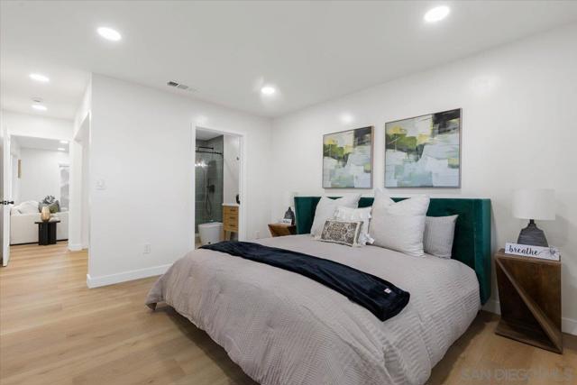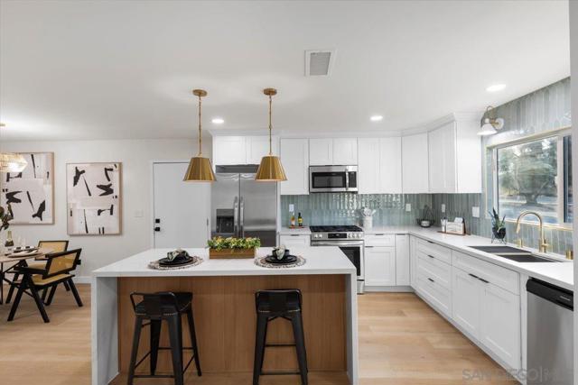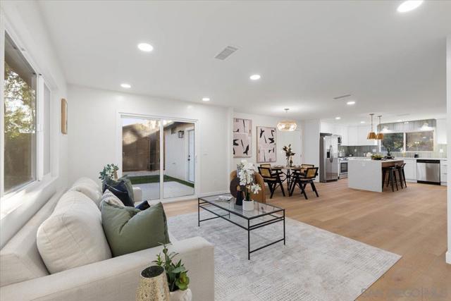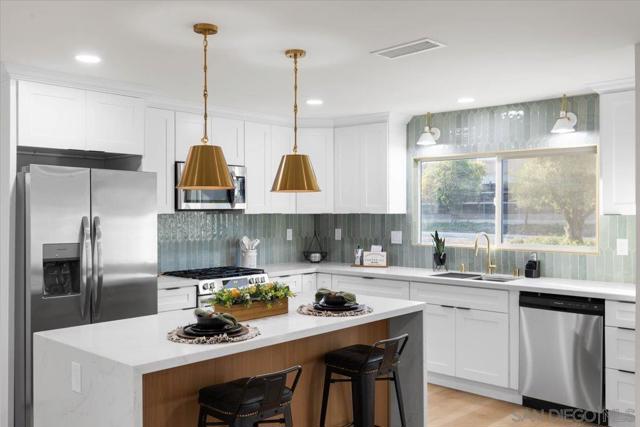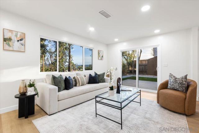 PRICED TO SELL WITH BUYER INCENTIVES! Welcome to 9659 Mast Blvd, a beautifully renovated 4-bedroom, 3-bathroom home situated on a spacious 0.26-acre corner lot in the heart of Santee. Offering 1,485 sq. ft. of modern living space and a 2-car garage with a brand-new garage door, this home has been thoughtfully updated with comfort and style in mind. Step through the modern new front door into an open, light-filled layout featuring brand-new LVP flooring throughout, recessed lighting, and dual-pane windows for energy efficiency and sound reduction. The centerpiece is the brand-new kitchen, showcasing quartz countertops, a stunning island with waterfall ends, and all-new appliances. Designed for today’s lifestyle, it flows seamlessly into the open-concept dining and living room, creating the perfect space for entertaining and everyday living. Modern light fixtures and a fresh neutral palette from the new interior and exterior paint elevate the design. The bathrooms have been fully renovated with new vanities, stylish tiled showers, and new tile flooring, blending function with contemporary finishes. The permitted additional bedroom and bathroom add flexibility for guests, multigenerational living, or a home office. Major upgrades include a new HVAC system, new fencing, new sod in the front yard, and new concrete poured in the backyard for additional entertaining space. Outdoors, the expansive lot offers endless opportunities for gatherings, gardening, or future expansion. Conveniently located near schools, parks, shopping, and freeway access, this turnkey home is the perfect!