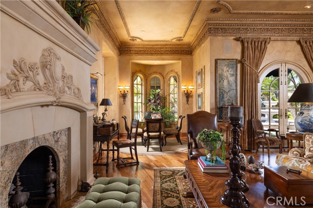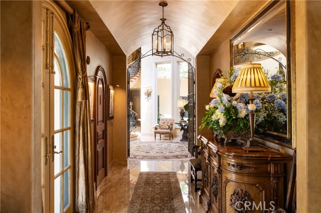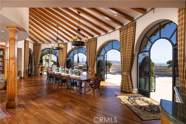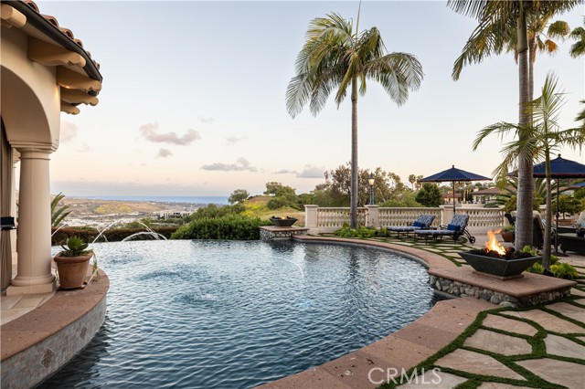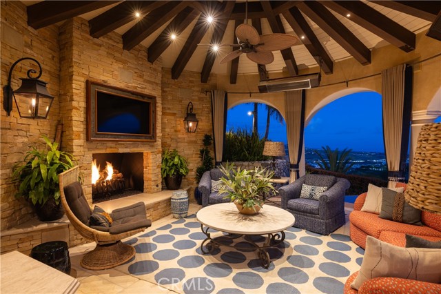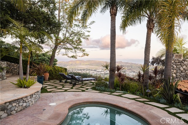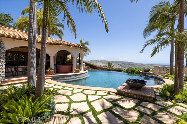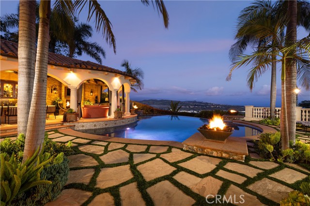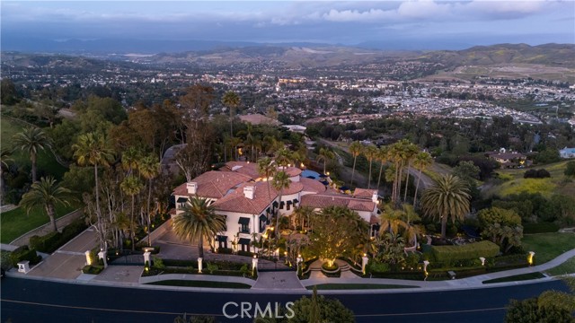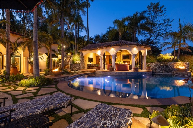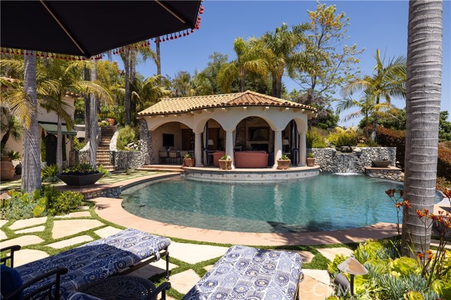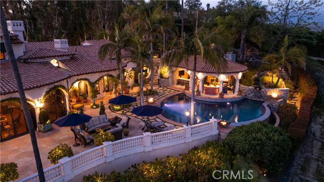 The Heart of Bear Brand Ranch. An unrivaled estate set on nearly an acre of gated privacy, surrounded by untouched land and rolling hills, 19 Old Ranch Road is a rare jewel in the prestigious enclave. Masterfully designed in timeless Spanish architectural tradition, the residence is enveloped by mature, lush landscaping—towering trees, vibrant gardens, and meandering pathways that evoke the romance of European countryside estates or the glamour of Old Hollywood. With commanding views stretching across the Capistrano Valley, Saddleback Mountains, and out to the Pacific Ocean and coastline, this sanctuary offers an unparalleled sense of serenity and grandeur. Expertly crafted, passionately designed, and meticulously maintained, the home features expansive grounds that invite refined indoor-outdoor living. A stunning resort-style pool with a cascading waterfall takes full advantage of the sweeping vistas. Anchoring the outdoor experience is a fully appointed cabana complete with a fireplace, bar, and lounge—an entertainer’s dream and a private escape in one. Inside, the residence offers a flowing, functional floorplan with 6 expansive and curated bedrooms, each with it's own en-suite bathroom seamlessly blending elegance with comfort. The dramatic great room to the outdoor spaces through custom steel French door, while the formal living space showcases a statement fireplace, stunning seating arrangements, offering a sense of refined luxury. A warm, inviting family kitchen and an intimate dining room with coffered ceilings connect to a private courtyard adjacent to a palm-filled atrium. The main-level hosts a sumptuous primary-bedroom suite offering views, privacy and elegance with spa-like steam shower, soaking tub, and custom closets . A secondary guest retreat, a formal office, a fitness room, and multiple entertainment spaces. Upstairs, four additional guest suites offer unique features, including a private casita with separate entrance, kitchenette, and living area—ideal for multi-generational living or guests. Additional rooms include a playroom, bonus lounge, and two bedrooms with charming Juliet balconies. Thoughtful details abound: a custom wine cellar, sauna, pool bath, and hidden garden paths that lead to tranquil seating areas and moments of discovery. An elevated in-ground spa, romantic fountains, private firepit terrace draped by mature pepper trees, and dramatic gated porte-cochere with four-car garage add to the home's irresistible ambiance.