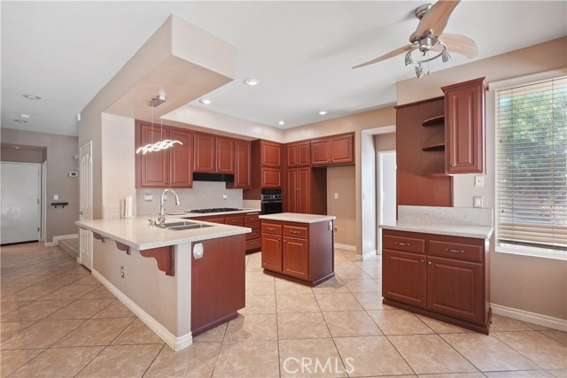 Welcome to 30536 Covecrest Cir! From the moment you walk through the front door, this Menifee home wraps you in warmth and elegance. High ceilings soar above a formal living and dining area, setting the stage for cozy evenings and joyful gatherings. With 5 bedrooms and 3 full bathrooms across 2,467 sq ft, the layout offers space and flexibility — including a downstairs bedroom and bath, perfect for guests or extended family. In the heart of the home is a beautifully renovated kitchen which features quartz counter tops, stunning Mahogany cabinets with endless amounts of storage. Thoughtfully designed with a built-in coffee bar, and abundant cabinet space, with pull out drawers for easy access to your daily needs. A space that inspires both quiet mornings and lively meals. Nestled in the living room you will find a beautiful fireplace with a cozy atmosphere, with a new 10 foot sliding door to access your oasis backyard. As you walk up to the second flood you are invited by lovely vinyl wood flooring covering upstairs. The primary suite is a true retreat, with beautiful high ceilings, a updated luxury wall to wall walk in shower, and stunning french doors opening to a private balcony overlooking a serene view of the sparkling pool, bubbling spa, and personal sauna. Whether you're sipping coffee at sunrise or watching the sunset, this space invites peace and reflection. This backyard is perfect for all family get-togethers, offering over 16,000 sqft in privacy. The backyard is surrounded by a crisp white block fence, and beautifully landscaped trees to provide even more privacy. This beautiful home screams curb appeal on a private cul-de-sac, and a welcoming driveway with a 3 car garage that is epoxied for an even more elevated experience. The garage gives additional storage space with over hanging storage shelves, as well as built in cabinets and work station for your mechanical needs. This home provides more than just your average needs but has also been thoughtfully upgraded and equipped with necessary needs for your family which includes, RV parking, ,and 27 paid-off solar panels make everyday living effortless, newer windows for energy efficiency, newer tile roof, water softening system, recent updated pool heater, upstairs bedrooms are equipped with individual AC control systems. With no Mello-Roos, you’ll enjoy lower costs in a neighborhood close to parks, schools, and shopping. This where your next chapter begins!