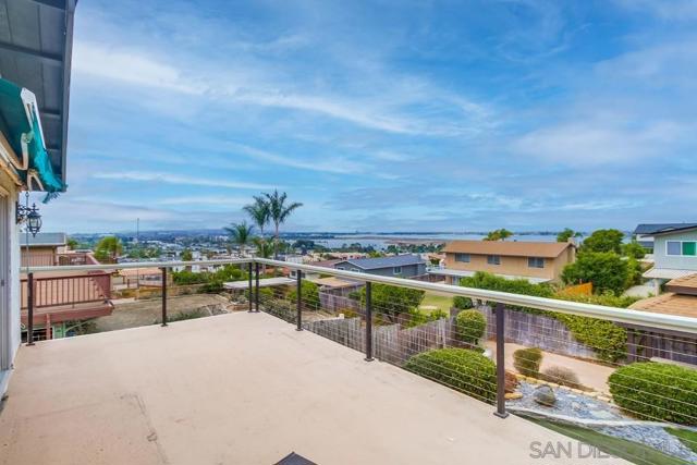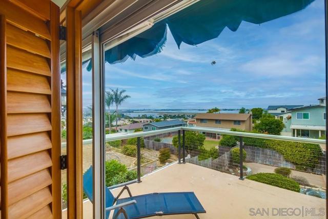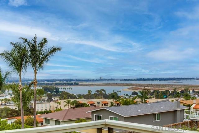 Unobstructed Views of Mission Bay from this 4 bedroom, 2.5 bath home on large fully fenced lot. This move-in ready, beautifully maintained home features vinyl plank and tile flooring throughout, upgraded kitchen with granite counters and stainless steel appliances, separate living room and family room, 2 gas fireplaces, separate laundry room, spacious master bedroom suite with two walk-in closets, lots of windows and views of the bay from every bedroom. This home is situated on a large 7300 sqft lot with courtyard entrance, mature landscaping, covered patios and large balcony, a great home for entertaining. This home has breathtaking bay and ocean views from every level and every room. Relax on your balcony at night and enjoy sunsets over the water and Sea World fireworks.