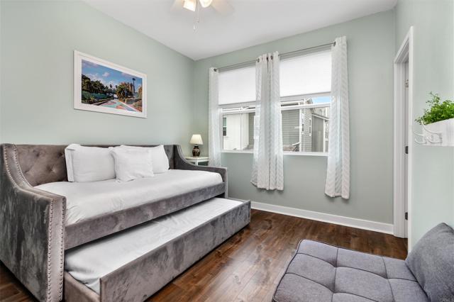 Discover your coastal oasis in the prestigious Tides community of Oceanside, where beachside dreams come to life. Nestled west of I-5, this stunning home boasts 4 spacious bedrooms and 4 full bathrooms, perfect for modern living. Wide-plank luxury vinyl flooring flows seamlessly throughout, complemented by soaring ceilings and abundant natural light streaming through premium Milgard windows, creating an open, airy ambiance. The heart of the home is an entertainer’s dream kitchen, featuring a striking stone island ideal for gatherings, sleek stainless steel appliances, trendy white shaker cabinetry, and a chic subway tile backsplash. Retreat to the expansive primary suite on the top floor, complete with a luxurious en-suite bathroom and generous walk-in closet. A second bedroom and full bath are conveniently located nearby, while the third bedroom resides on the middle floor. The versatile fourth bedroom, on the lower level, includes a full bathroom, mini fridge, and microwave—perfect for multi-generational living or rental income potential. Designed with sustainability in mind, this home features energy-efficient LED lighting, water-saving Kohler plumbing, and fully paid solar and an EV charger in the garage, ensuring low utility costs. Just minutes from pristine beaches, vibrant dining, and premier shopping, this is Southern California living at its finest. Welcome home to coastal elegance and endless possibilities!