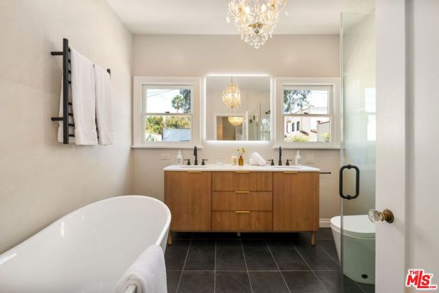 Located in the Historic Miracle Mile, this thoughtfully restored 1926 Tudor Revival brings together both preserved history and modern comfort with updated luxury amenities. The design inspiration respects the home's old-world character and European influences while bringing in modern warm tones and natural materials that complement the original architecture. The prominent gables giving the Tudor home its recognizable character are a mere glimpse of what to expect throughout. The floral motif detailing above the window arches is a hallmark of period-revival architecture, giving the faade character and emphasizing the craftsmanship of the era. The entry is framed by a handcrafted front door, which was carefully preserved by stripping it down to its original character. Inside, original details remain, including leaded glass windows, antique light fixtures, refinished hardwood floors, and a rare custom telephone alcove. The modern kitchen reflects design and function, showcasing Rift Oak cabinetry, Viola marble surfaces, and sleek sandblasted marble floors. Chef-grade appliances from Subzero, Wolf, and Bosch elevate the kitchen, while industrial hardware and a Brizo pot filler provide refined finishing details. The spacious primary suite continues the theme of timeless character blended with modern comfort. Its spa-inspired bath features porcelain floors, fogless backlit mirror, and an LED-lit shower niche. And, a heated towel warmer adds a thoughtful touch for those crisp mornings. Upstairs, Manhattan meets L.A., with a New York loft-style retreat unfolding with ample open space that runs the length of the house and provides multiple spaces of flexible use. Whether using the large family area for entertaining and one of the alcoves for a private retreat, this loft offers it all. Outdoor living balances heritage and comfort, with historic statuary and custom ironwork set alongside an Alfresco BBQ. The landscaping has thoughtfully been updated from front to back, and an oversized deck complements the backyard and is completed with a Jacuzzi spa. These spaces extend the home's character outward, creating an environment as memorable as the interiors. This residence celebrates the architectural heritage of Miracle Mile while offering the security of fully renewed systems, including electrical, plumbing, HVAC, and roofing. This Tudor Revival is a true "brand-new hundred-year-old home".