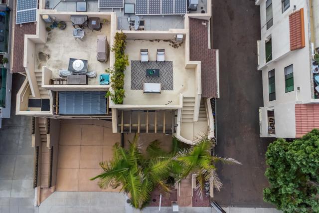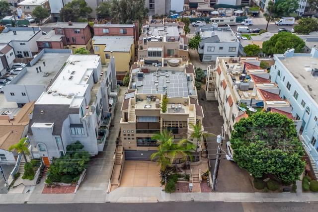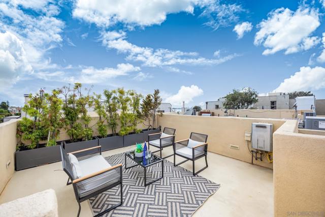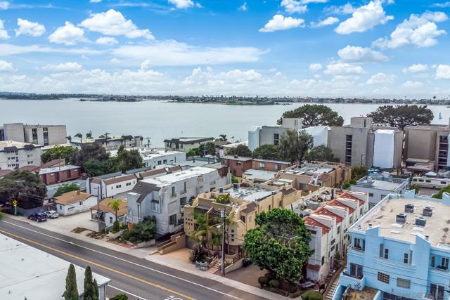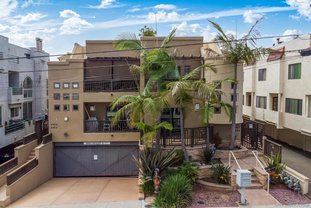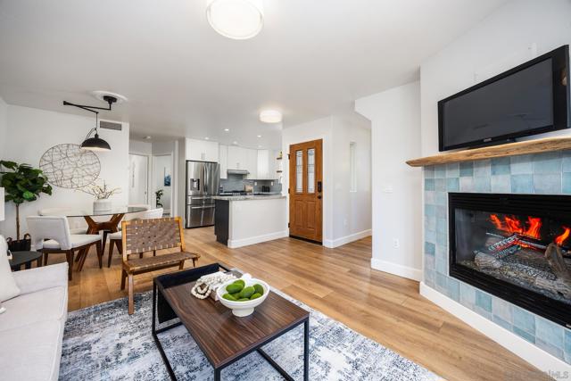 Welcome to your coastal sanctuary just steps from the shimmering waters of Sail Bay in Pacific Beach! This elegantly remodeled three-bedroom, three-bathroom townhome offers the perfect blend of modern luxury and Bay serenity—ideal as a primary residence, vacation getaway, or investment property. Spanning 1,520 square feet, the home was tastefully remodeled in 2019 with attention to every detail, featuring luxury vinyl plank flooring, quartzite slab countertops, custom cabinetry, and newer stainless steel appliances. Additionally, the refrigerator, washer, and dryer all convey, making this a true turnkey opportunity. Designed for comfort and sophistication, the home showcases LED lighting and a cozy gas fireplace that brings warmth and ambiance to the main living space. Upstairs, discover two spacious primary suites, each offering walk-in closets illuminated by expansive skylights and designed as bright, inviting spaces filled with natural light. Modern upgrades such as a new air conditioning unit, tankless water heater, and paid solar system ensure energy efficiency and peace of mind. The private roof deck provides a serene escape with sweeping bay views and a drip irrigation system—perfect for morning coffee, sunset gatherings, or entertaining under the stars. Situated in a boutique four-unit community with low HOA fees and two dedicated parking spaces, this residence embodies elegance, convenience, and the best of coastal living. Experience refined design, modern comfort, and the ultimate beach lifestyle at 3986 Riviera Drive.