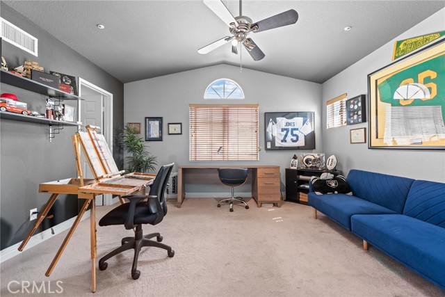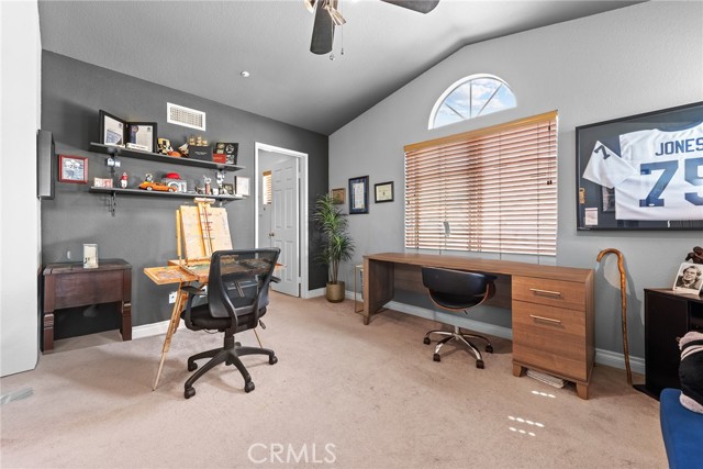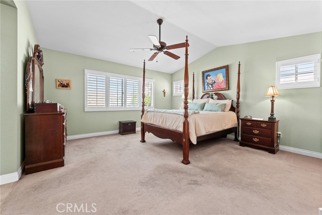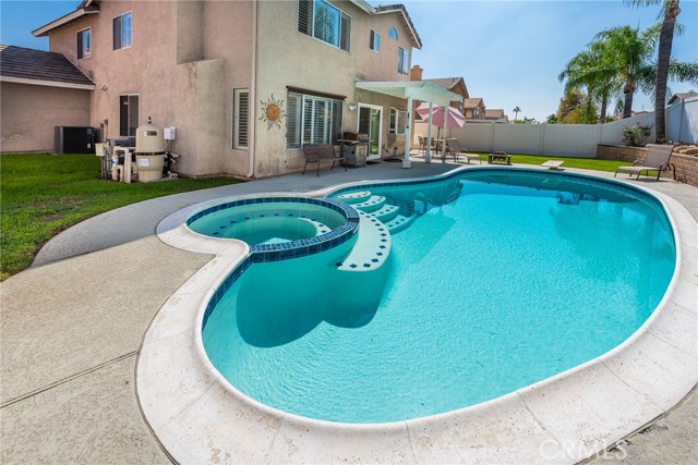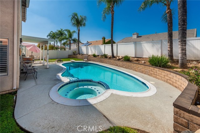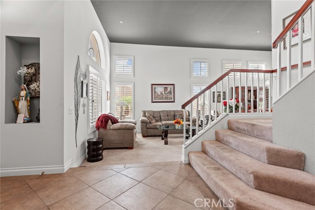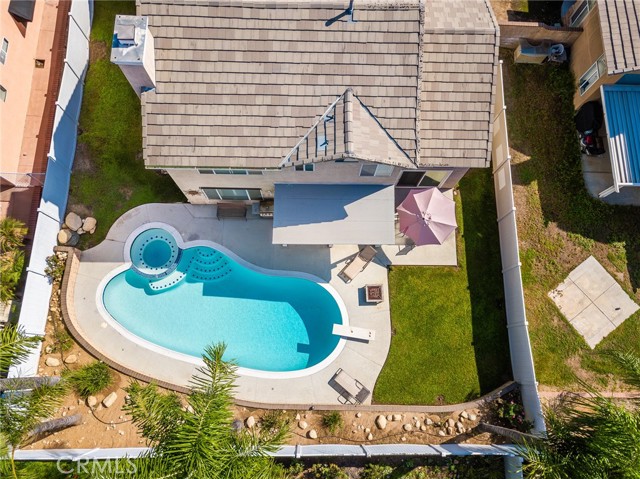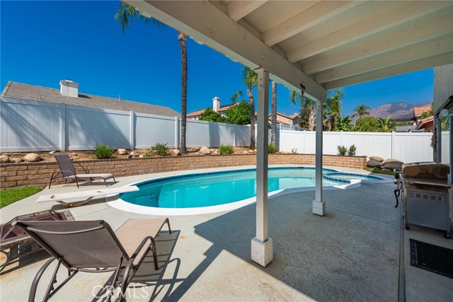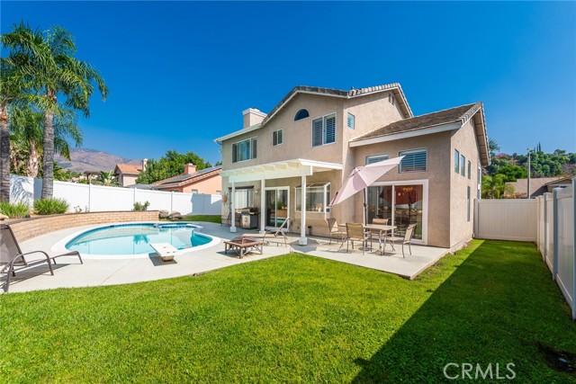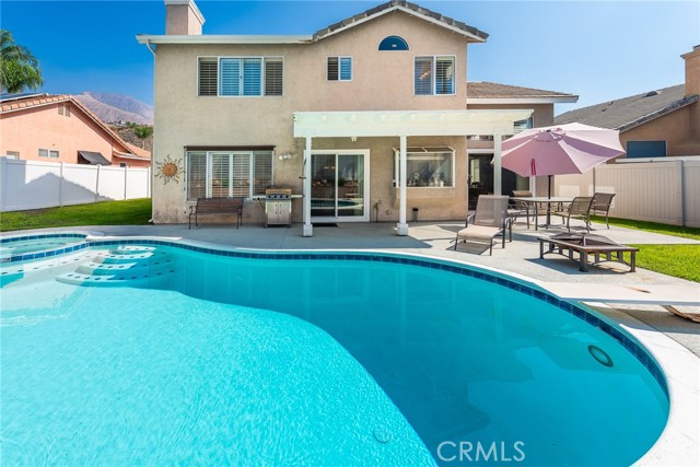 Beautifully maintained POOL home in the foothills of the San Bernardino Mountains! This spacious 4bed, 3bath home offers an open floorplan filled with natural light and lots of upgrades. The living areas feature white plantation shutters throughout, creating both style and privacy. Downstairs has a convenient guest bedroom and full bath, ideal for guests or those avoiding stairs. Upstairs, the primary suite has been expanded to include an attached sitting room (originally a fifth bedroom), which can easily be converted back if desired. Two additional guest bedrooms and a full bath complete the upstairs layout, providing plenty of space for the whole family. Step outside and enjoy a backyard designed for entertaining, featuring a covered patio and heated pool and spa, perfect for family gatherings year round. Located in a quiet, non-HOA neighborhood, this home also offers the charm of a small community park within walking distance. Don’t miss your opportunity to own this wonderful home in a highly desirable location!