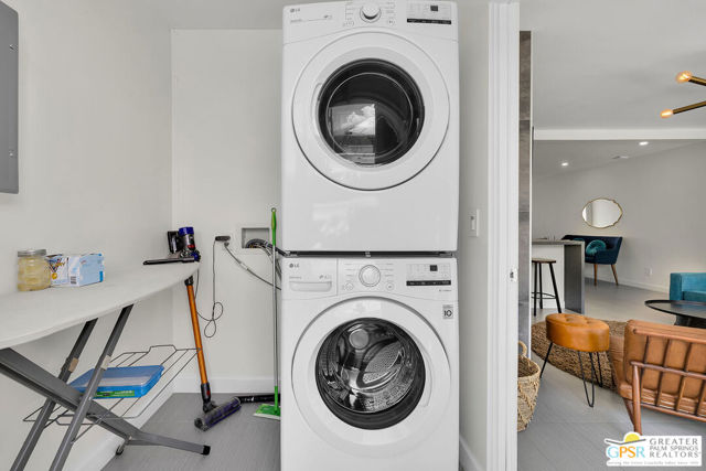 Discover this beautifully updated 1954 Meiselman-built mid-century home, perfectly situated in the heart of Movie Colony East in Palm Springs. This stylish retreat features two spacious bedrooms, two full bathrooms, and a versatile den that can easily serve as a third bedroom, home office, art studio, or gym. Recently renovated, the home has a sleek open-concept kitchen, modern bathrooms, and generously sized bedrooms. The kitchen is a chef's dream, offering panoramic views through a wall of glass that overlooks the sparkling pool and the serene mountain backdrop. Step outside and enjoy the ultimate desert lifestyle with a refreshing swim in the recently added pool, a soak in the spa, or a barbecue followed by alfresco dining beneath the built-in shade structure. As the sun sets, gather around the cozy fire pit for relaxing evenings and great conversation. The fully gated property includes a one-car garage, ample off-street parking, and a fully owned solar system with a Tesla battery helping you save on energy costs year-round. Last but not least, this home is offered turnkey furnished. Interested in rental income? Check with the City of Palm Springs about obtaining a Junior Rental Permit. Contact the agent today for a private showing of this iconic Palm Springs home!