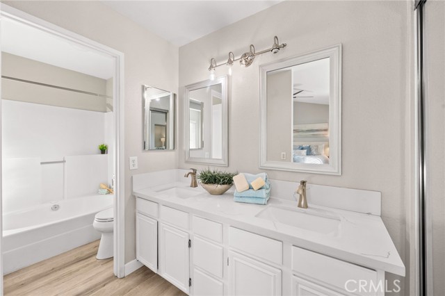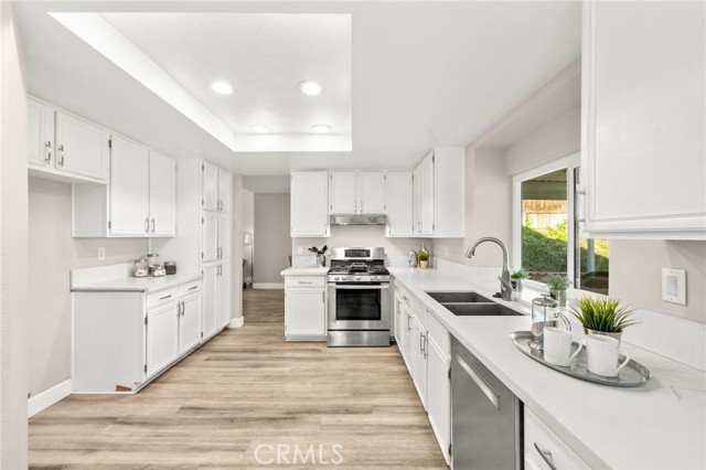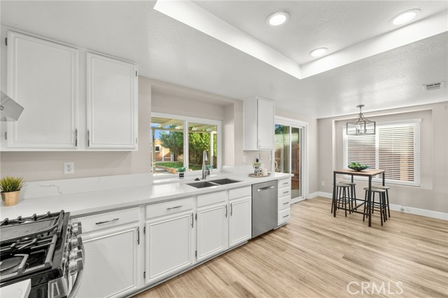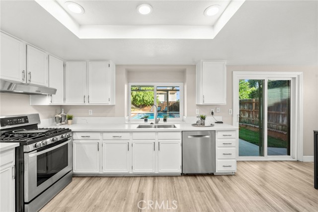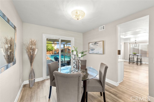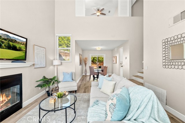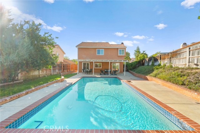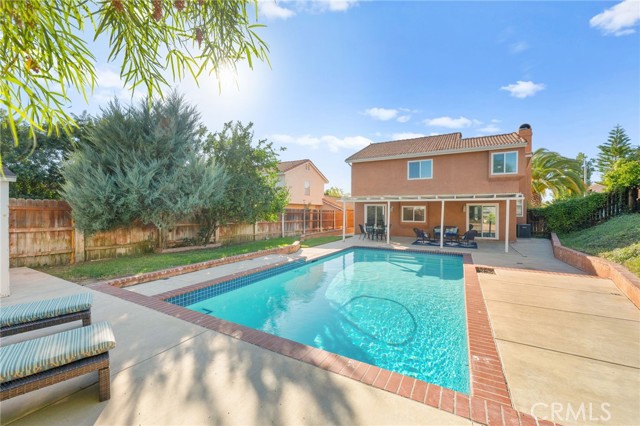 Remodeled Temecula Pool Home! Located on a sunny suburban street, this 3 Beds / 2.5 Baths, 1458 Sq Ft property offers both a family-focussed & modern layout with refreshed features to match. Travel up the front porch past the new dual-pane bay window overlooking well-manicured flower beds. Once inside, follow the chic dove grey laminate floors into the living room & notice the two-story ceilings showering the entry with natural light. Continue past the spacious living room into the kitchen's sliding glass access to the backyard built for tranquil gatherings with family & friends. The multi-level patio stretches from the covered patio area surveying the masonry-coping pool stretching to the far end of the backyard where the raised patio section seats another group of loved ones. Back inside, trek the mod stairs to the second level where the distinctive layout of each bedroom welcomes a seamless flow of sunlight & a lofty feel that overlooks the first floor. The addition of the plantation shutters and curtain allows versatility to use the open space as a loft or 4th bedroom. Reset & relax in the master bedroom where sliding glass closet doors reflect the brightness of the large picture window & the updated dual-sink vanity offers space to pamper yourself in style. Additional bedrooms each feature a new dual-pane window & modern light fixtures, plus a full bathroom with a stylish updated vanity. Addtn'l features include: attached 2-car garage with fresh white automatic door, powder room, Spanish tile roof, fresh paint, new windows, minutes from Temecula shopping & nature reserves, I-215, I-15, Award-Winning Temecula Schools.