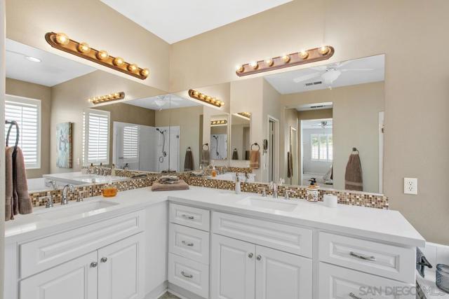 IMMACULATE! FOUR SEASONS 55+ PROVINCIAL 3 (THE LARGEST FLOORPLAN). YOU ARE GREETED WITH SOARING CEILINGS, A BEAUTIFUL BEVELED GLASS DOOR, AND LVP FLOORING THROUGHOUT THE MAIN LIVING AREAS. THE HOME FEATURES CUSTOM PLANTATION SHUTTERS, CEILING FANS, STAINLESS STEEL APPLIANCES, LIGHT AND BRIGHT KITCHEN CABINETS WITH BUILT INS FOR PANTRY. PRIMARY SUITE FEATURES 2 LARGE WALK IN CLOSETS AND UPDATED CABINETS WITH QUARTZ VANITY. PLENTY OF ROOM FOR GUESTS WITH 2 OTHER SPACIOUS BEDROOMS AND EVEN A SEPARATE OFFICE. YOU WILL ENJOY PLENTY OF STORAGE WITH A SHED ON THE SIDE OF THE HOUSE. THE GARAGE ALSO HAS TONS OF CABINETS! FIXED LEASED SOLAR AT $72/MONTH
