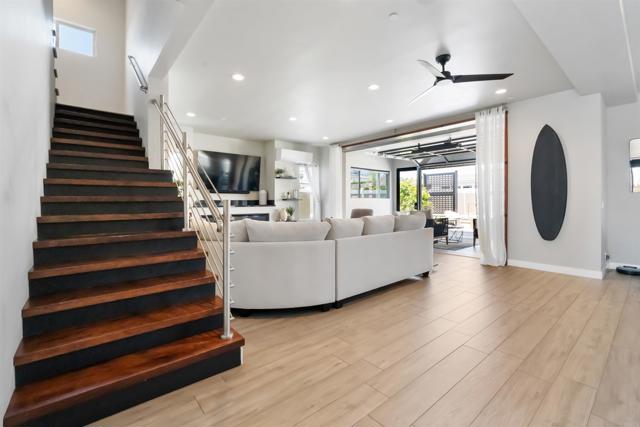Welcome to your dream home in the heart of Pacific Beach! This stunning coastal masterpiece offers over 3,400 sq ft of thoughtfully designed living space with style, function, and entertaining in mind. Step into an expansive open-concept layout flooded with natural light, ideal for hosting or simply enjoying everyday beachside living. The gourmet kitchen is a chef's dream, featuring a full-size chef-style pantry and premium finishes throughout. Retreat to one of three spacious decks, including a private rooftop deck with breathtaking ocean and bay views-perfect for sunset cocktails or morning yoga. The detached garage offers ADU potential, ideal for quests, a home office, or future rental income. Every inch of this home has been crafted to impress. From its high-end finishes to the unbeatable location just minutes from the sand, this is Pacific Beach living at its finest.
