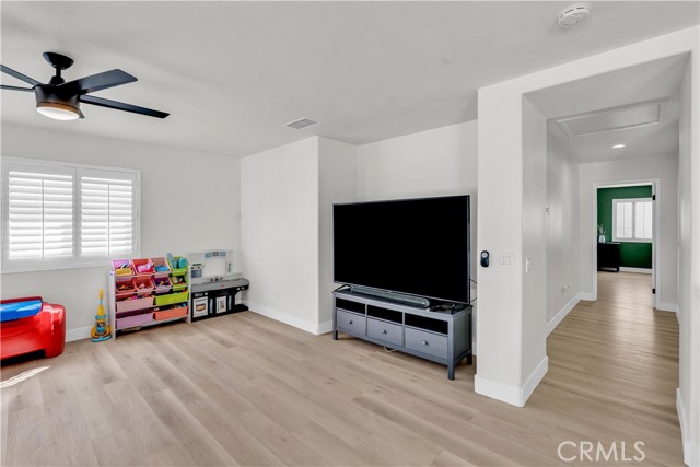 Beautifully updated Murrieta home featuring PAID solar, EV charging, and soaring ceilings filled with natural light. The open, airy layout includes two main-level bedrooms and a full bathroom, perfect for guests, an office, or multi-gen living. A bright sunroom with dual ceiling fans creates a seamless indoor-outdoor feel—ideal for relaxing or entertaining. Upstairs, an oversized loft and private primary suite offer a peaceful retreat with a jetted tub, walk-in shower, and walk-in closet. Throughout the home, enjoy upgraded flooring, plantation shutters, and a clean, modern finish that enhances every space. A garage workbench adds convenience for weekend projects or extra storage. Located within award-winning Murrieta schools and just minutes from Murrieta Hot Springs, Rancho California Golf Club, and Temecula Wine Country, this home blends comfort, energy efficiency, and California charm with no HOA, low taxes, and no Mello-Roos.