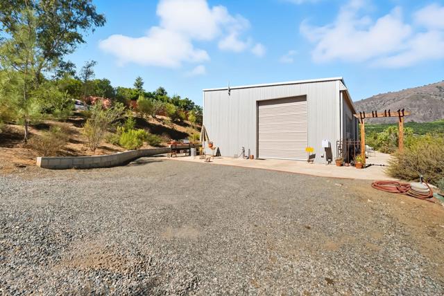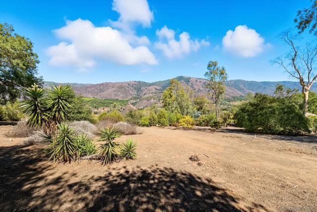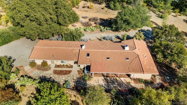 Tucked at the end of a wooded cul-de-sac is a remarkably private home with two major structures and a storage shed. The pristine main home is single story with tile floors & tile roof, two fireplaces, beamed ceilings, split a/c, laundry room & two car garage. The additional 2100 sq. ft. multi-purpose building has workrooms, loft bedrooms, bathrooms, utility kitchen, a/c, 16' ceilings, a roll-up door for a travel trailer and huge view windows to enjoy acres of lush groves and the majestic Palomar Mountain. The property is nestled among groves and nurseries for creative peacefulness. There are dozens of irrigated fruit trees including apple, avocado, orange, lemon, lime, pomegranate, kumquat, peach, persimmon & macadamia. The ambiance is one of total relaxation. Fresh mountain air, birds chirping, quail scooting, resident roadrunners, hawks and eagles all make for a truly enjoyable lifestyle.