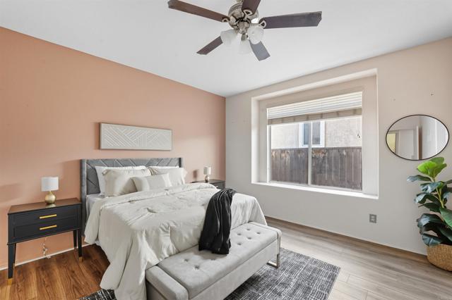 Discover this beautifully upgraded, move-in ready 3-bed, 3-bath residence on a corner lot in this premier golf-course community. With fresh landscaping, newer fencing, and a recently replaced roof, curb appeal is just the beginning. Step inside to find soaring ceilings, luminous open spaces, and sleek finishes—vinyl plank floors, new tile accenting the baths and kitchen, quartz countertops, and stainless appliances. The main floor hosts the master suite, while upstairs offers two additional bedrooms and a full bath—perfect for family or guests. Cozy fireplaces grace both the living area and kitchen nook. Smart security features, ceiling fans, and thoughtful touches elevate everyday living. Enjoy the amenities of Menifee Lakes—two championship golf courses, pools, lakes, parks—and easy access to shopping, schools, and the 215 freeway. This isn’t just a home—it’s your next chapter.”