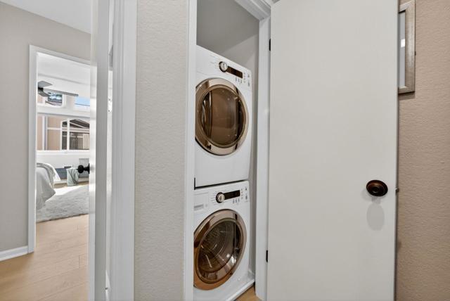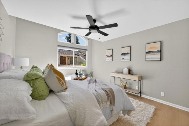 Welcome to 2867 S. Bascom Ave, #606, a beautifully updated, turnkey top-floor corner condo in the gated Cedar Terrace community. This rare 1-bedroom, 1-bathroom home features soaring vaulted ceilings, abundant natural light, and a modern design throughout. The remodeled kitchen boasts Shaker-style cabinetry, quartz countertops, stainless steel appliances, and a convenient pass-through/bar area perfect for entertaining. The living area includes a cozy wood-burning fireplace and views of the community pool. Freshly painted with luxury vinyl plank flooring, lighted ceiling fans, and double-pane windows, this home offers both style and functionality. Enjoy added convenience with in-unit laundry, ample closet space, two secure underground parking spaces, and an additional storage closet. Residents also have access to community amenities, including water, trash, a pool, spa, and clubhouse, with smart security at the entrance gate. Located near Downtown Campbell, The Pruneyard, Trader Joe's, Los Gatos Creek Trail, and top-rated schools, this home offers unbeatable convenience and a prime location. Don't miss this move-in-ready gem!