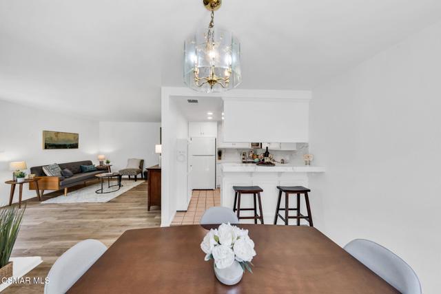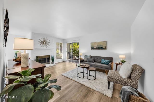 Welcome to this light and bright, single story, ground level, two bedroom, two bathroom home in a prime corner location at Oaknoll Villas, a 55+ owner-occupied, active senior community. This sparkling end unit has new luxury vinyl floors throughout, updated kitchen with quartz counter & bar, updated baths, new paint and steps away from the secret butterfly garden. The living room, filled with an abundance of light, has a fireplace and views to the lush patio area with mature plants, including 2 lemon trees and an orange hibiscus tree. From the living room, there is a separate dining area just off the kitchen. Down the hall, you have the secondary bedroom and bathroom with new quartz counter. At the end of the hall, there's a primary bedroom suite with walk-in closet, updated bathroom with laundry closet, and a large window for plenty of natural light. Features include newer HVAC, newer refrigerator, new dishwasher, and stackable washer & dryer. Oaknoll Villas has wonderful community amenities including pool, spa, clubhouse, gym, billiard room, card room, shuffleboard courts, yoga room, and dog park. The HOA also includes trash, cable/internet, complimentary plumbing service, plenty of guest parking and landscape maintenance. This desirable community is centrally located and close to shops, restaurants, nearby parks, Conejo Valley Botanical Garden, The Oaks Mall and Hillcrest Center for the Arts.