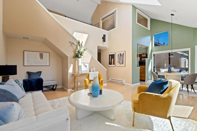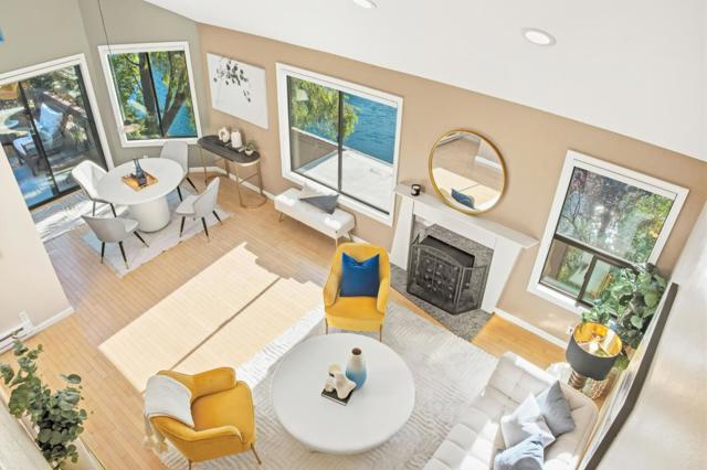 Exquisite waterfront loft in Harbortown offers the perfect blend of luxury, serenity, and convenience. Enjoy sweeping lagoon views from the living room, dining area, kitchen, and open loft above. The soaring vaulted ceilings and skylights fill the home with natural light, creating an airy, peaceful retreat. The gourmet kitchen features granite countertops and premium cabinetry. The spacious primary suite includes a private balcony with fountain view, walk-in closet, and spa-like bath with soaking tub. The versatile loft area is ideal for a home office, gym, or guest room. In-unit washer/dryer. Resort-style amenities include indoor/outdoor pools, spa, sauna, and tennis courts. Easy access to Hwy 101, shops, and top-rated Aragon High.