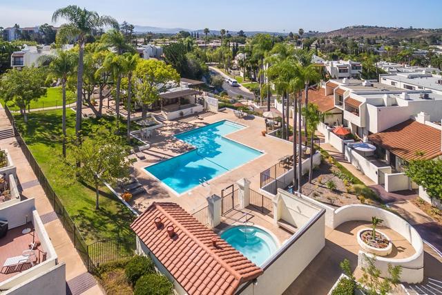 Highly coveted end-unit in Vista Del Cerro! Spacious living room with soaring ceilings, gas fireplace, and access to a private patio. Gourmet kitchen with granite counters, stainless steel appliances, and breakfast bar. Upstairs features a primary suite with tall ceilings, ample closets, and a private balcony, plus two additional bedrooms. Gated front patio and attached two-car garage. Community offers park-like grounds, pool, and clubhouse. Walk to highly rated Dailard Elementary and Patrick Henry High School. A true must-see!