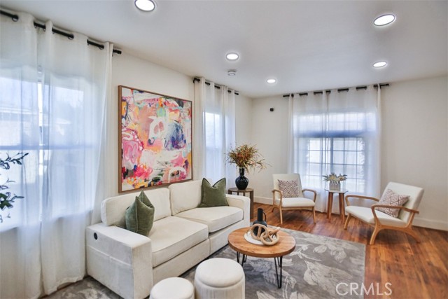 Welcome to 6851 Coachella Ave – A Beautifully Updated Corner-Lot Home in Long Beach! This charming single-story corner home offers 3 spacious bedrooms and 1 bathroom, perfectly combining modern comfort with timeless character. Step inside to a bright living area featuring re-stained wood floors, recessed lighting, and abundant natural light. The tile flooring in the kitchen and hallway adds both style and easy maintenance. The remodeled kitchen showcases quartz countertops, new cabinetry, designer tile backsplash, and stainless-steel appliances, ideal for everyday living and entertaining. The dining area features a new modern chandelier, adding elegance and warmth. The upgraded bathroom offers contemporary finishes and fixtures for a clean, refreshed look. Enjoy the outdoors in your large private backyard with a detached 2-car garage — or explore the potential to build an ADU and SB9 unit for additional income, with finished renderings included. Additional highlights include fresh interior and exterior paint and a long driveway providing ample parking. Situated on a quiet corner lot near schools, parks, shopping, and easy access to the 710 and 91 freeways, this move-in-ready home delivers comfort, functionality, and long-term value. 6851 Coachella Ave – where modern updates meet opportunity and classic Long Beach charm!