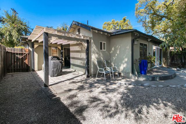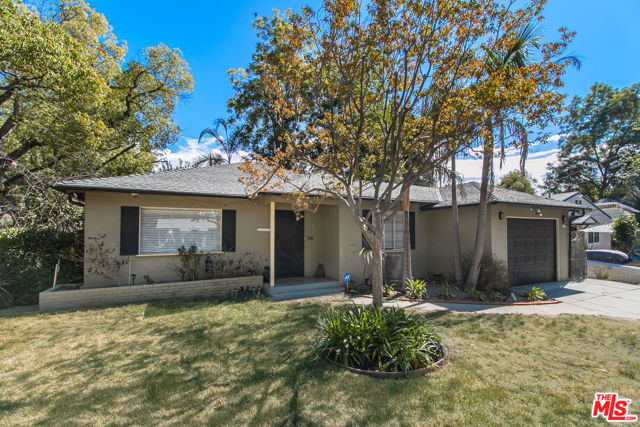 Set on a picture-perfect, tree-lined street in highly desirable Pasadena, this lovely mid-century home offers 2 bedrooms and 2 full bathrooms. The interior features hardwood and slate flooring throughout, original windows, and an open sunroom that connects to a tranquil backyard with a soothing fountain and covered patio ideal for entertaining or relaxing. The cozy kitchen boasts wood countertops, a hammered copper farmhouse sink, pantry, dishwasher and additional copper prep sink. The spacious primary suite includes a skylight, jacuzzi tub, slate flooring, and vanity with a copper vessel sink. Additional highlights include central air and heat, an attached one-car garage, and a charming fenced backyard perfect for outdoor dining or enjoying peaceful nights under the stars in your private jacuzzi.