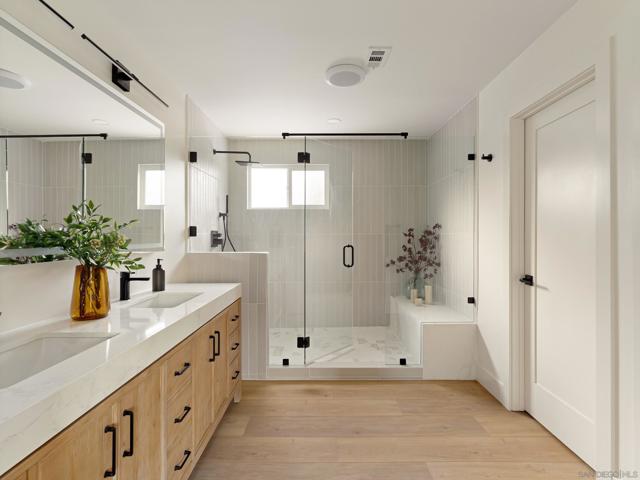 Welcome to this stunning, fully renovated home that blends modern upgrades with timeless design on a large, useable cul-de-sac lot. Inside you’ll find an open floor plan with new LVP flooring, fresh paint/texture, all new dual pane windows, and a beautifully redesigned fireplace. The chef’s kitchen features slim white shaker cabinetry, a white oak waterfall island, quartz counters, stainless steel appliances, and a microwave drawer. The primary suite offers a spa-like bath with dual vanity and tiled walk-in shower. Includes a permitted private-entry multigenerational ADU suite with kitchenette, bath, AC—perfect for guests, extended family, or rental income. Exterior upgrades include all new landscaping with sod, planters, mulch, automatic sprinklers/drip system, garage door, and full exterior paint. Newer roof with warranty, paid-in-full solar, and two Tesla Back up Batteries. Full sized indoor laundry room with storage, mirrored closet doors, recessed lighting and new GFCI’s throughout. This home has been fully reimagined for modern living and is 100% move-in ready. Welcome to this stunning, fully renovated home that blends modern upgrades with timeless design on a large, useable cul-de-sac lot. Inside you’ll find an open floor plan with new LVP flooring, fresh paint/texture, all new dual pane windows, and a beautifully redesigned fireplace. The chef’s kitchen features slim white shaker cabinetry, a white oak waterfall island, quartz counters, stainless steel appliances, and a microwave drawer. The primary suite offers a spa-like bath with dual vanity and tiled walk-in shower. Includes a permitted private-entry multigenerational ADU suite with kitchenette, bath, AC—perfect for guests, extended family, or rental income. Exterior upgrades include all new landscaping with sod, planters, mulch, automatic sprinklers/drip system, garage door, and full exterior paint. Newer roof with warranty, paid-in-full solar, and two Tesla Back up Batteries. Full sized indoor laundry room with storage, mirrored closet doors, recessed lighting and new GFCI’s throughout. This home has been fully reimagined for modern living and is 100% move-in ready.
