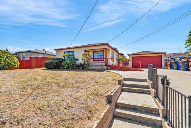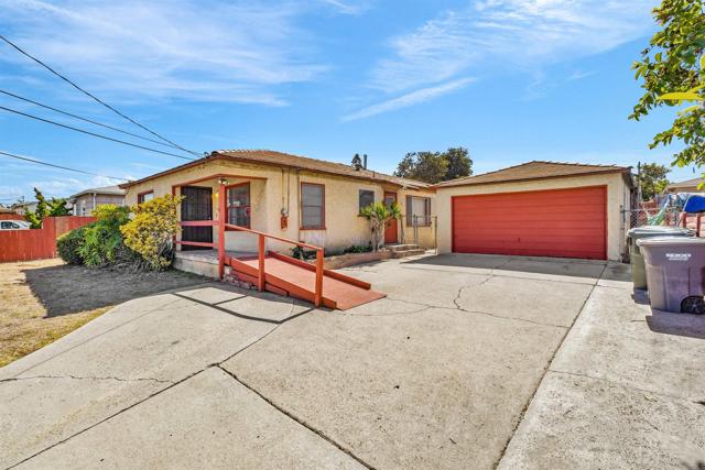 Charming single-level home on a elevated, spacious R-2 zoned lot (approx. 10,000 sq. ft.) offering multi-unit or ADU potential! This 3-bedroom, 1-bath residence is ideally located in National City, close to schools, parks, shopping, and freeways. Detached 2 Car Garage plus extra in rear. The home features original hardwood flooring and an original vintage wood kitchen which offers warmth and character, ready for your modern updates. The bathroom has been modified for accessibility with a walk-in shower. Expansive backyard with mature shade tree, detached garage and storage structure, and plenty of room to add an ADU or second unit (check with city for R-2 zoning possibilities). Long driveway for multiple vehicles, RV, or boat parking. Just 10 miles to the San Diego Airport and 8 miles to Coronado Island. A rare opportunity for investors, builders, or first-time buyers looking for a property with space to grow!