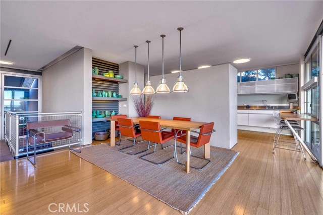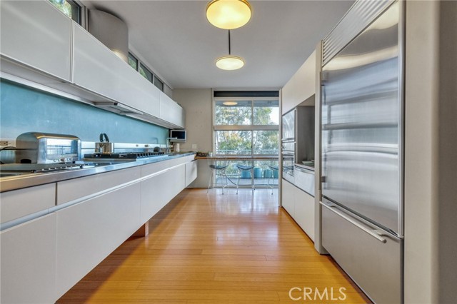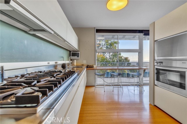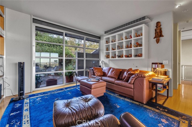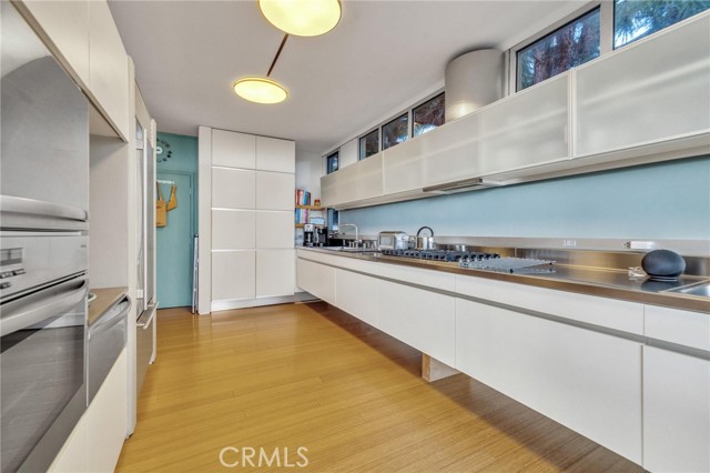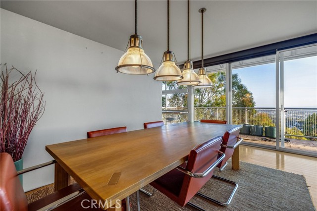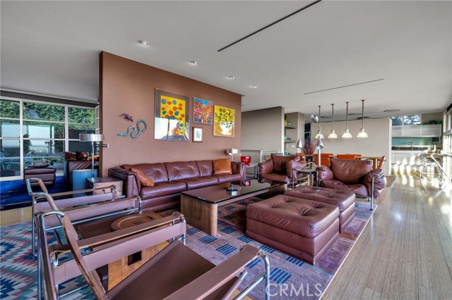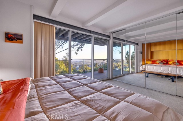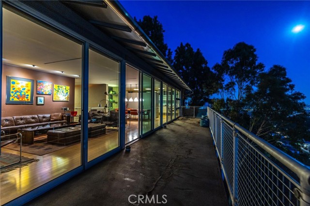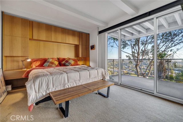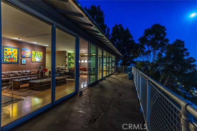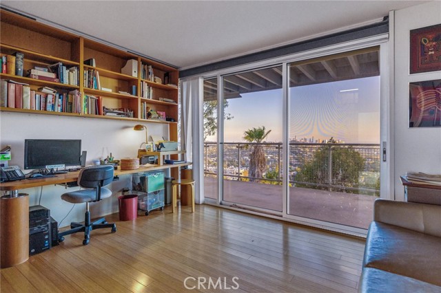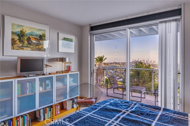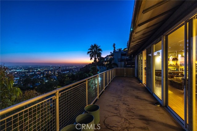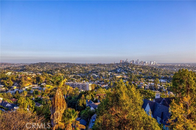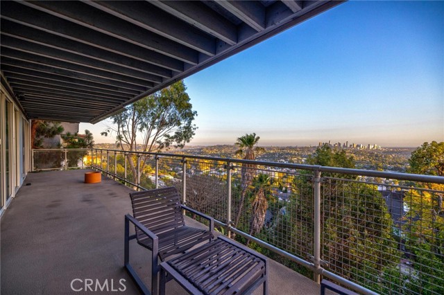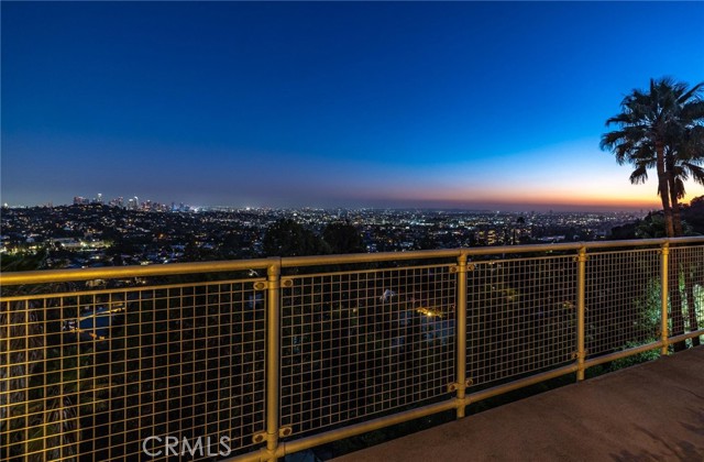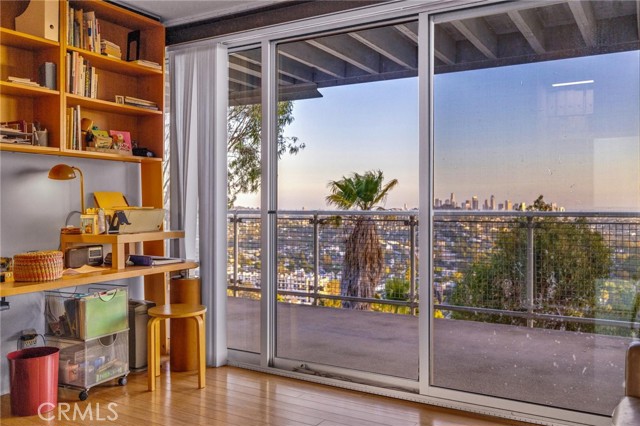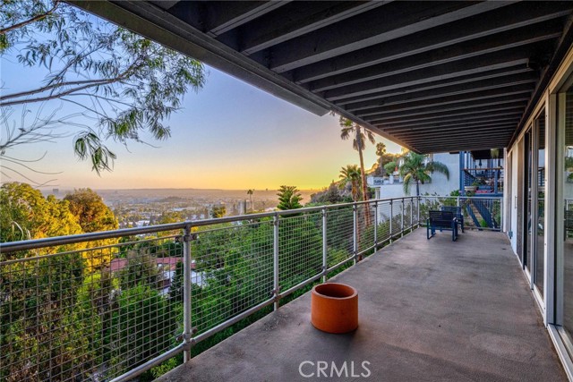 Perched atop the coveted Los Feliz Hills, this striking contemporary residence—designed by architect Robert James Elder—is a true architectural statement. Known as The Industrial House, this 3-bedroom, 3-bathroom home spans over 3,100 square feet across three meticulously designed levels, blending industrial aesthetics with modern comfort. Expansive glass walls and single-pane picture windows flood the interior with natural light and showcase panoramic views of the Los Angeles skyline and surrounding mountains. Whether you're enjoying your morning coffee or a sunset and dinner, every moment is framed by breathtaking scenery. The main level features a spacious living room with bamboo flooring, designer air ducts, and custom built-ins. A sleek galley-style chef’s kitchen is outfitted with Sub-Zero, Miele, and Viking appliances, steel countertops, and an oversized custom spice rack—ideal for both entertaining and everyday living. The open-concept layout includes a den, powder room, and floor-to-ceiling windows for seamless indoor-outdoor ambiance. On the second level, you'll find three serene bedrooms, all offering stunning views. The primary suite boasts a private balcony, dual sinks, and a spa-like glass shower. The additional bedrooms are generously sized and share a beautifully appointed guest bath with an oversized tub and glass shower. The lower level offers flexible living space perfect for a family room, gym, or potential junior ADU, complete with exterior access. With exposed steel beam construction, bamboo finishes, and concrete staircases with designer railings, the home exudes both strength and style. The lower level has been digitally rendered to provide the buyer with options of flex space. PLEASE REVIEW SUPPLEMENTS 3-D VIDEO & ADDITIONAL PHOTOS. Solar panels are paid and in working order.