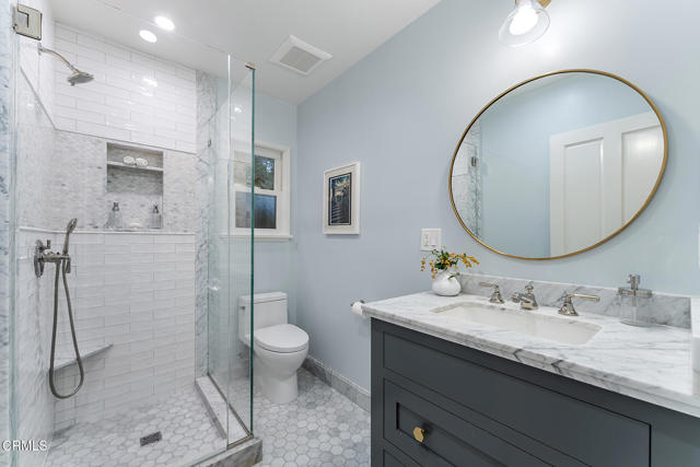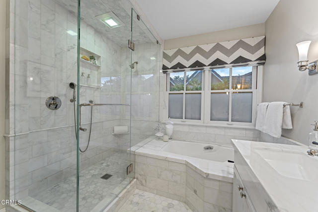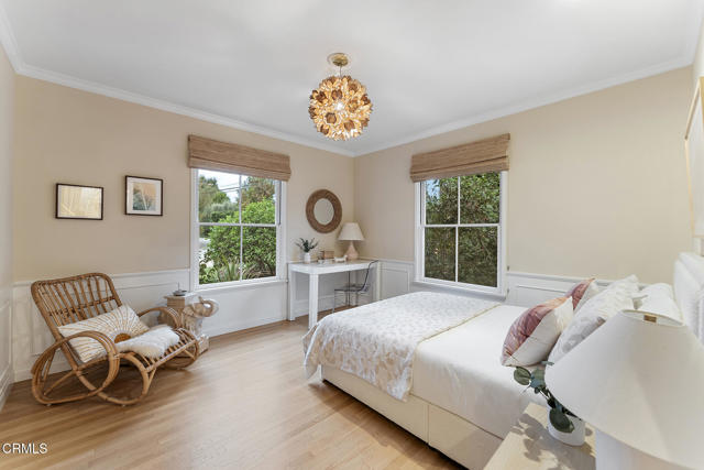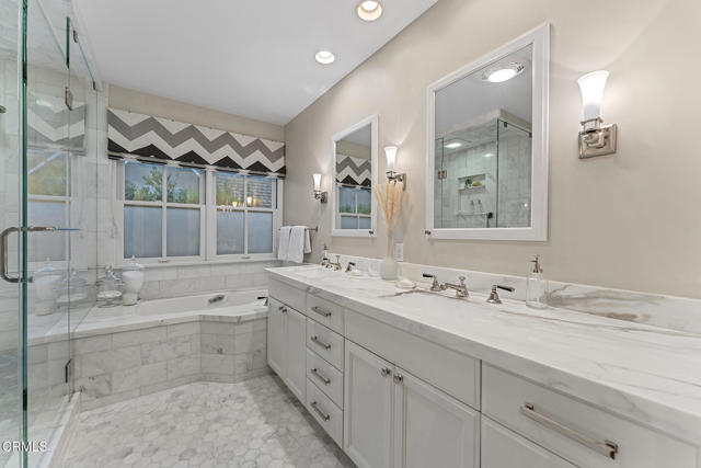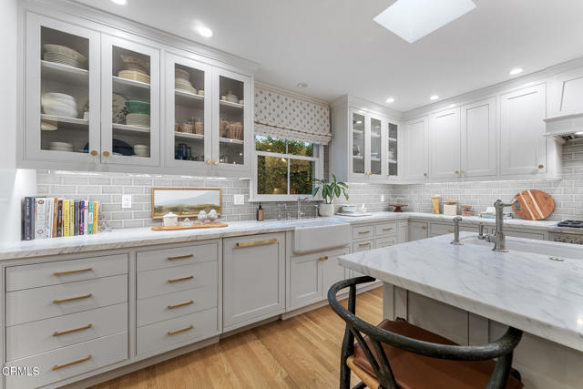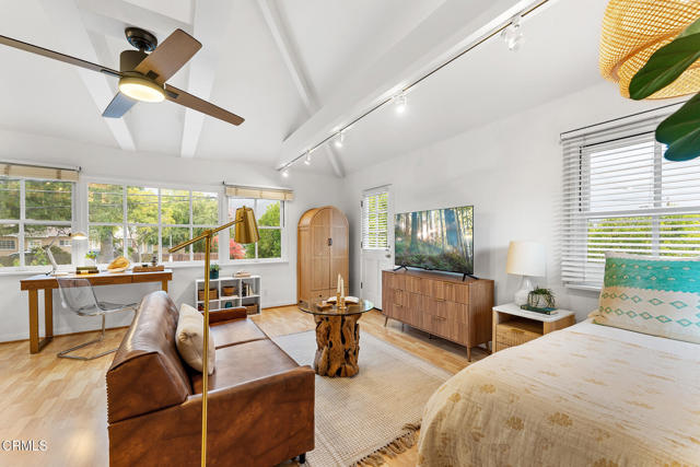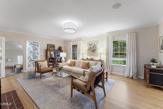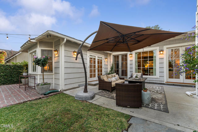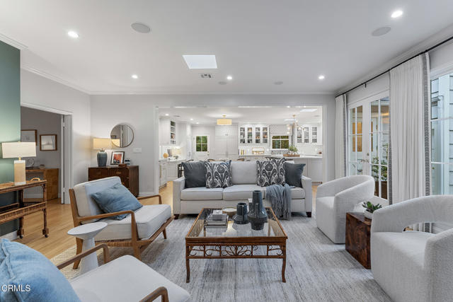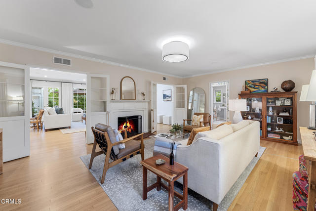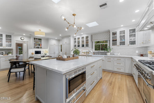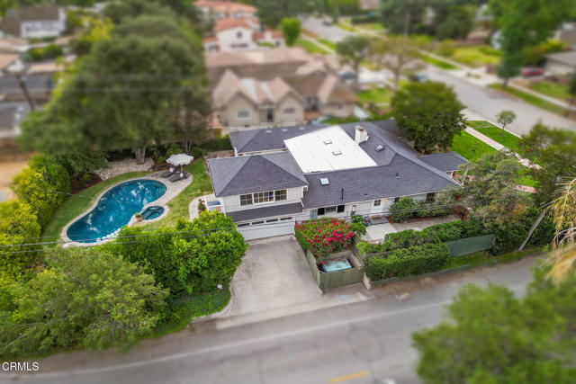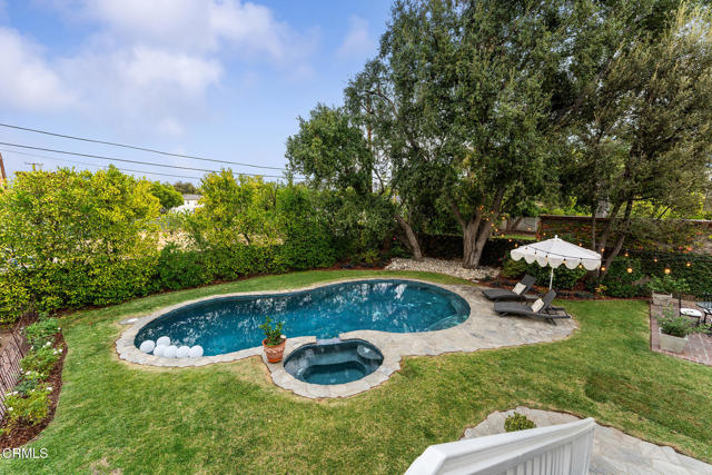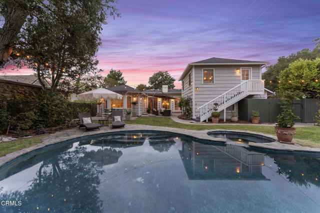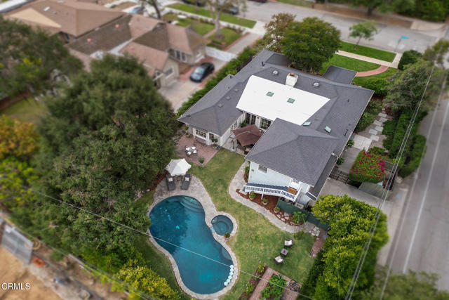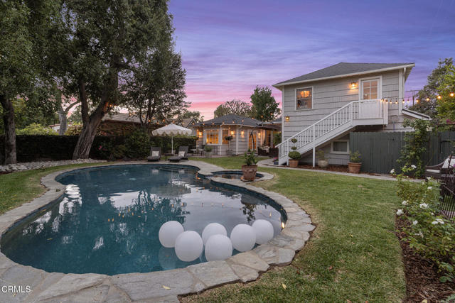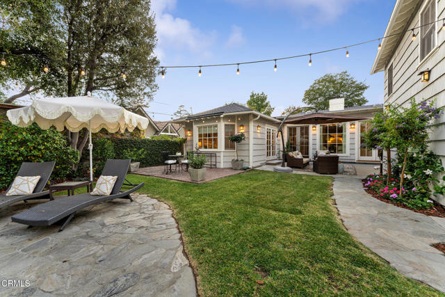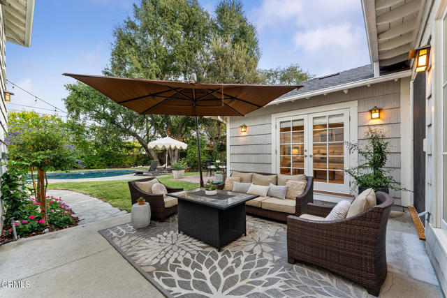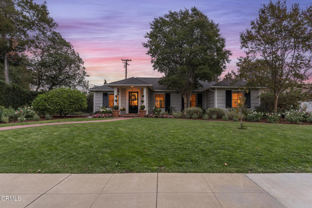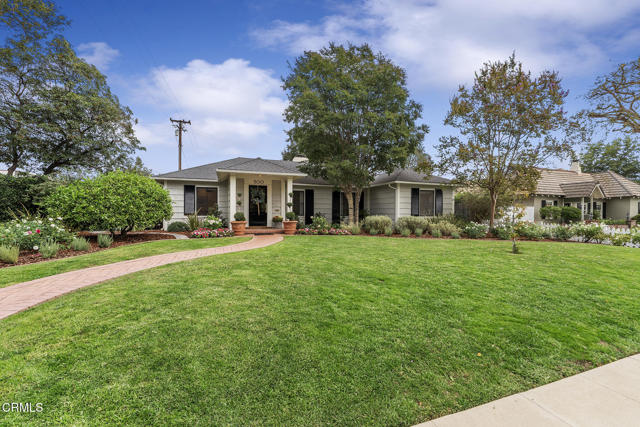 Located in the sought-after San Pasqual/CalTech area of Pasadena, this reimagined single-story residence embodies the timeless charm of the classic traditional architecture and a well-thought-out addition and renovation by the current owner. A manicured front yard with blooming seasonal flowers leads to the welcoming front porch and entrance hall.The formal living room, centered around a charming fireplace and framed by French doors, opens to the sunlit 'great room,' the true heart of the home. This open, high-ceiling space features a chef's kitchen with stainless-steel appliances, custom cabinetry, marble counters, and a center island with a snack bar and anchored by a striking chandelier; a large dining area with beverage refrigerator and built-in desk; and a versatile gathering area designed for both intimate daily living and festive entertaining, enhanced by skylights, integrated surround sound, and double French doors invite an effortless indoor-outdoor flow to the patio, backyard, and sparkling pool.A nearby bedroom with walk-in closet and adjacent three-quarter bath is cleverly designed so that, with a hallway door, it can function as a private ensuite. On the northeast side, another bedroom with built-in bookcases enjoys views of the front yard, while the hallway full bath with vanity table and a separate laundry room with utility sink add everyday convenience.The primary suite offers a serene retreat with a charming bay window, direct access to the backyard, and a tranquil, spa-like bath designed for daily rejuvenation. This luxurious space features a double vanity topped with marble counters, a large soaking tub, and a separate shower with a frameless glass enclosure. A custom-fitted walk-in closet with built-in shelving and drawers completes this elegant suite.A detached guest house above the garage is perfect for guests, home office or a future ADU conversion! Designed for comfort and California living, this Pasadena gem harmoniously blends classic character with modern functionality--ready for its next lucky owner to enjoy and call home!!!