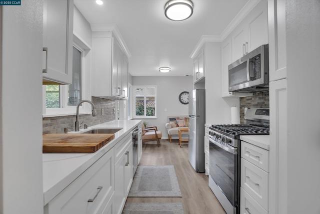 Discover a beautifully maintained home that is move-in ready, featuring improvements designed for modern comfort. Spacious floor plan offers flexibility with two separate living areas—a dedicated living room complete with a cozy brick fireplace and a family room, created from the converted garage, perfect for relaxing or hosting guests. Step onto the attractive luxury vinyl plank flooring that extends seamlessly throughout the entire home. The heart of the house, the kitchen, has been beautifully updated with stylish shaker cabinetry, premium quartz countertops, subway tile backsplash, high-quality newer stainless-steel appliances, including a gas range. Enjoy a large, functional utility/laundry room & the peace of mind provided by dual-paned windows, newer baseboards, hardware, light fixtures, and a newer roof. The primary bedroom is a true sanctuary, featuring an ensuite bathroom and direct access to the backyard patio. Outside, you’ll find a private, peaceful backyard oasis and a beautiful screened-in patio ideal for year-round entertaining. Quick access to major highways and BART for easy commuting. Just minutes from vibrant Downtown Pleasant Hill, with a variety of restaurants, shopping, and movie theatre. Don't miss this fantastic home & incredible location!