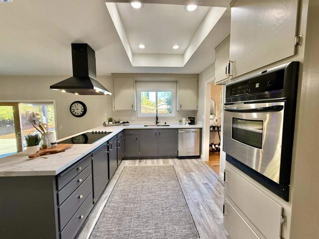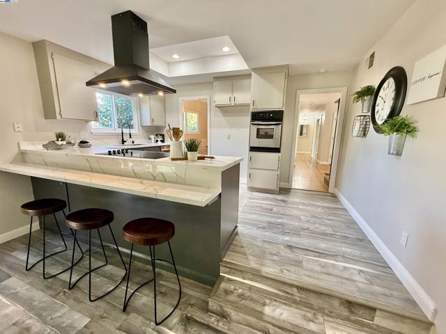Welcome to this beautifully maintained 4-bedroom, 2-bath home situated on a desirable corner lot in a peaceful Walnut Creek neighborhood. Step inside to a formal step-down living room with new hardwood floors, perfect for relaxing or entertaining guests. The central dining room also features gleaming hardwood floors and connects seamlessly to the updated kitchen with new quartz countertops, sink, faucet, and hood. The kitchen opens to a spacious family room, creating a comfortable family-friendly flow. Both rooms feature new flooring, and the family room includes a cozy fireplace and sliding glass door that leads to the expansive backyard. All four bedrooms are generously sized, including the primary suite with an updated private bathroom. The large hall bath has also been refreshed with new vanities and fixtures. Enjoy the outdoors on the large corner lot with an inviting backyard featuring an arbor, mature fruit trees, and several grapevines — perfect for outdoor entertaining or peaceful relaxation. Recent updates include new interior and exterior paint, refinished original hardwood floors, new light fixtures throughout, and new door hardware. This charming home combines timeless character with modern upgrades — move-in ready and full of Walnut Creek appeal!