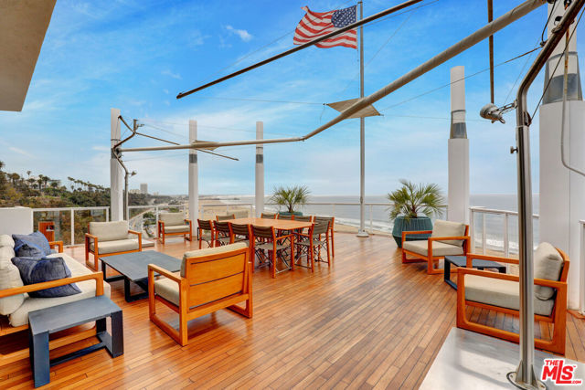 If you've ever dreamed of living at the beach, this is that dream realized. Welcome to the only two-story residence in Santa Monica's most iconic oceanfront building where the Pacific stretches endlessly before you.The main living area soars with 12-foot ceilings, flooding the space with natural light and endless blue horizon views. From sunrise to sunset, watch sailboats drift by, dolphins play, and the Santa Monica Pier Ferris wheel glow against the night sky. In July, fireworks illuminate the coastline best enjoyed from your private ocean-view deck or the custom sea-glass light-up bar inside.Step through the private tunnel for a walk on the sand, or stroll to nearby restaurants for world-class seaside dining. Inside, every detail has been curated for comfort, elegance, and effortless living. Each of the three bedrooms includes an ensuite bath, plus a chic powder room for guests. The primary suite offers the same 180-degree ocean panorama as the living room with dual walk-in closets and a spa-inspired bath featuring a BainUltra hydro-jetted tub with heated backrest, chromatherapy, and aromatherapy.The chef's kitchen boasts top-of-the-line Miele and Viking appliances, quartz countertops, and a 150-bottle Viking wine cooler. A spacious laundry room includes a full sink and custom cabinetry. One bedroom has been transformed into a private media lounge with seven leather recliners easily converted back to a bedroom or home office. Lutron solar shades adorn every window. Three parking spaces and two EV chargers add convenience to coastal luxury.The building's resort-style pool area has just completed a multi-million-dollar renovation.Welcome home to 101 Ocean Avenue where every day feels like vacation. Link to 3D walkthru - Https://my.matterport.com/show/?m=pkDQUQsxUtx&
