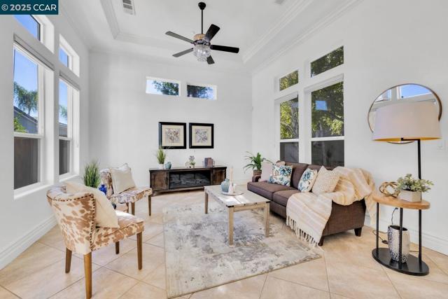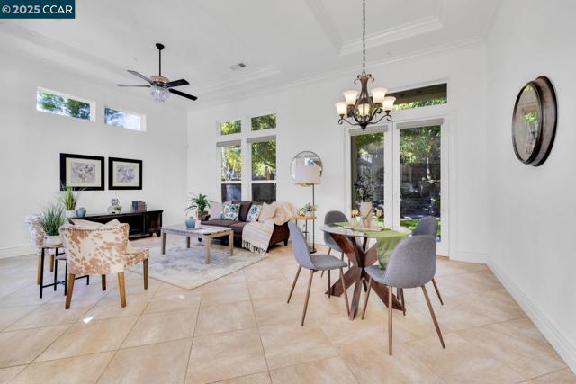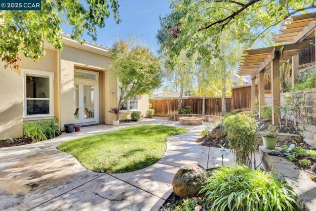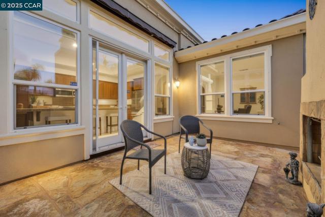 Tucked away on a quiet court in Trilogy at the Vineyards’ sought-after Bordeaux Village, this elegant 2-bedroom, 2-bath home with a den/office offers resort-style living in Brentwood’s premier 55+ community. Soaring vaulted and coffered ceilings with elegant crown molding create a spacious, refined feel throughout the open-concept family, dining, and kitchen areas. The chef’s kitchen is a showstopper—featuring rich wood cabinetry, gleaming granite counters, stainless steel appliances, and a large island with plenty of room for seating. French doors open to a charming side courtyard complete with a built-in fireplace and retractable awning—perfect for outdoor dining or evening relaxation. The terraced backyard is a private retreat, highlighted by mature landscaping, shade trees, and a beautiful stone fire pit for gathering under the stars. Enjoy Trilogy’s renowned amenities including the clubhouse, resort-style pool, fitness center, bocce courts, walking trails, and nearby vineyards. Experience the best of upscale, active adult living in one of Brentwood’s most desirable communities.