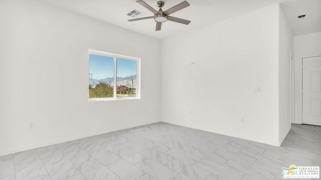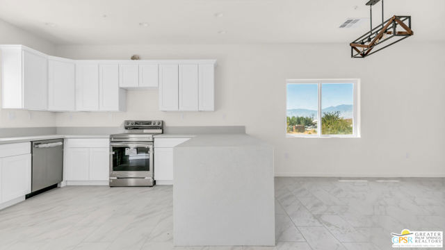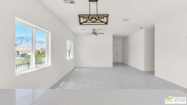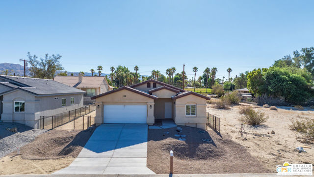 Contemporary Desert Living With Private Guest Quarters! Welcome to this brand-new contemporary home in Desert Hot Springs, where modern design meets comfort and convenience. This single-story residence features an open-concept layout with stylish upgrades that feature tile flooring that flows seamlessly throughout the living spaces. Clean lines and modern finishes create a sleek, inviting atmosphere. The thoughtfully designed kitchen with stainless steel appliances , waterfall granite counter top opens to the living and dining areas, making it ideal for entertaining or relaxing at home. A special highlight of this property is the private guest quarters, offering flexibility for visiting family, friends, or even a home office. With its combination of contemporary elegance, practical design, and the ease of single-level living, this home is move-in ready and perfectly situated to enjoy everything Desert Hot Springs has to offer. Equipped with Central AC / Heat and Solar. Enjoy your mountain views while entertaining in your fenced back yard.
