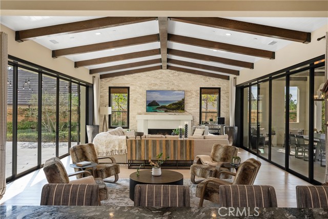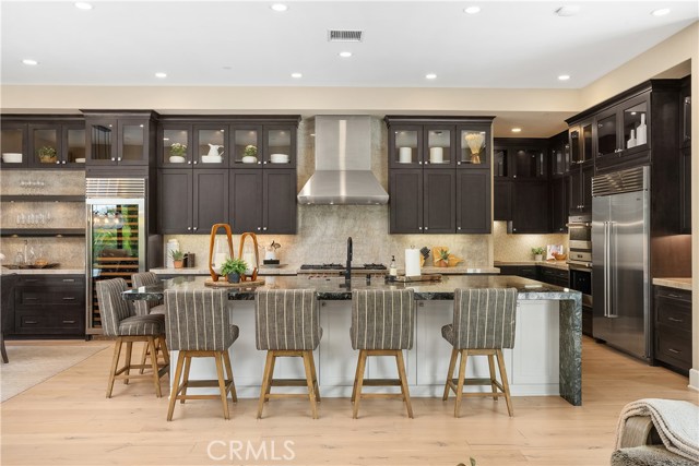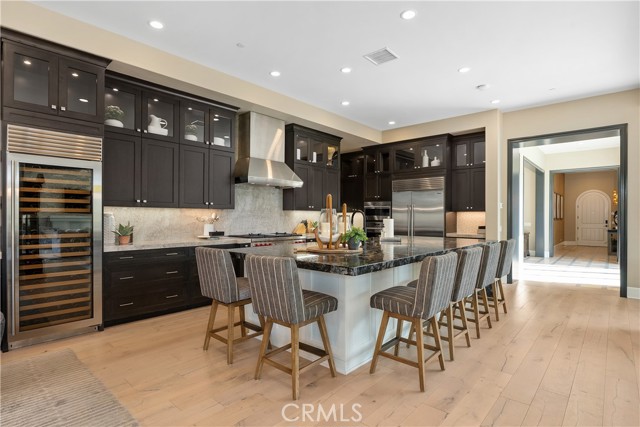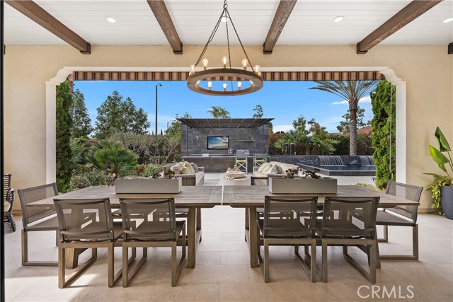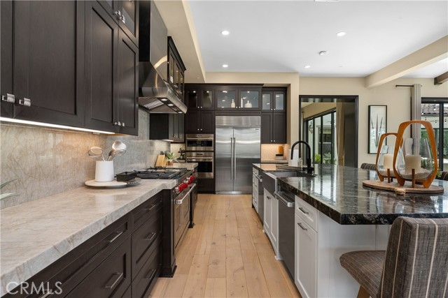 Experience true single-story luxury living in the prestigious Wedgewood community of Yorba Linda. Built by Shea Homes, this exceptional residence offers approximately 4,607 sq ft of refined design and craftsmanship, showcasing over $1.3 million in upgrades inside and out. Enter the home to find an open layout filled with natural light, high ceilings, and designer finishes throughout. The chef’s kitchen is a true highlight, featuring a Wolf 48" dual-fuel 6-burner range with grill, Wolf built-in ovens & microwave, dual Asko dishwashers, and Sub-Zero built-in refrigerators in both the main and back kitchens. Custom cabinetry, a waterfall-edge island, premium slab countertops, and integrated under-cabinet LED lighting complete this entertainer’s dream space. The primary retreat features a private morning bar equipped with a Wolf coffee system and a Sub-Zero beverage center. Many areas of the home have been enhanced with custom-built features, including designer cabinetry, integrated media walls, office built-ins, decorative mirrors, and accent finishes, reflecting thoughtful craftsmanship and attention to detail. Throughout the home, you’ll find custom paint, professionally curated interiors, wood-beam ceilings, LED lighting, and architecturally inspired lighting elements that enhance both style and ambiance, along with Hunter Douglas woven shades and multiple sliding-glass doors that create seamless indoor-outdoor living. The primary bathroom offers a spa-inspired atmosphere with dual vanities, a freestanding soaking tub, luxury fixtures by Moen’s Align Series, and a rain shower. Both secondary bedrooms are spacious, each with its own en-suite bathroom. The flexible 4th room, perfect for use as a home office, creative studio, or guest room. The dedicated laundry suite features a GE washer & dryer, built-in sink, and ample cabinetry for convenience and organization. Outdoors, over $500,000 in custom landscape and hardscape design transforms the space into a private resort, complete with pool, spa, outdoor kitchen, BBQ area, and multiple seating zones that perfectly complement the single-story architecture and relaxed California lifestyle. Every detail of this home reflects modern sophistication, comfort, and timeless elegance, offering the finest in luxury living within one of Yorba Linda’s most desirable neighborhoods.