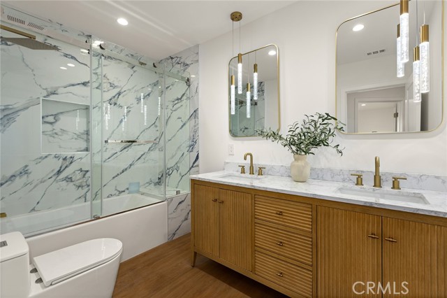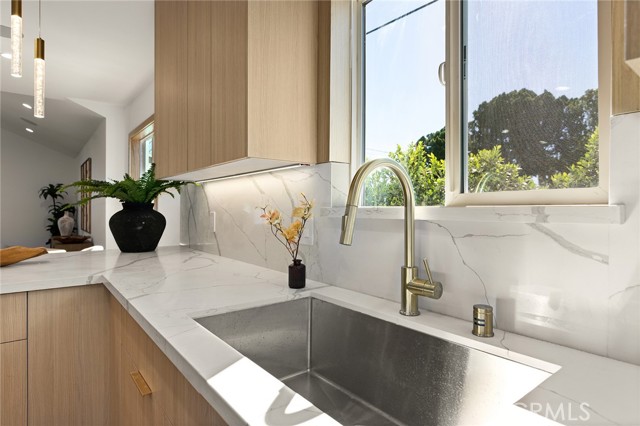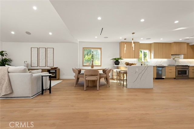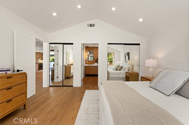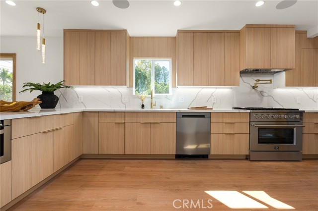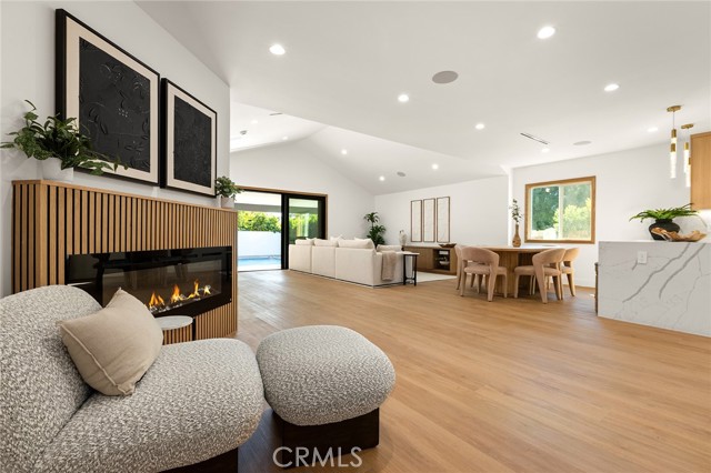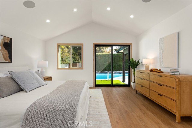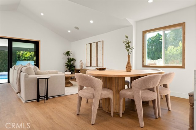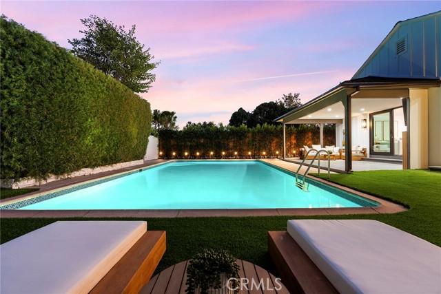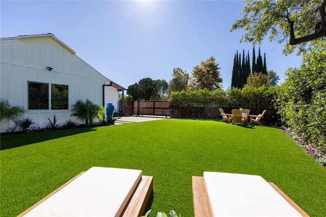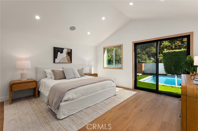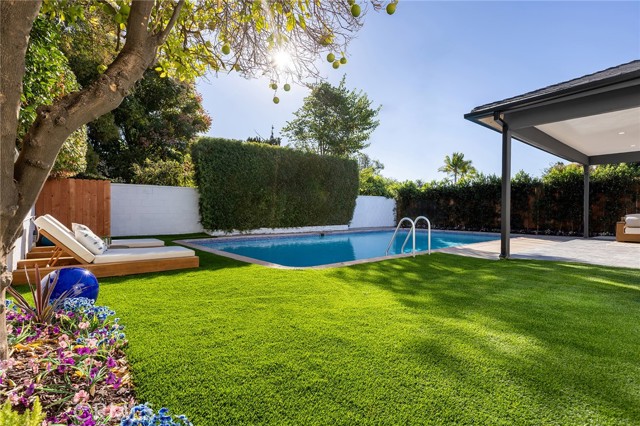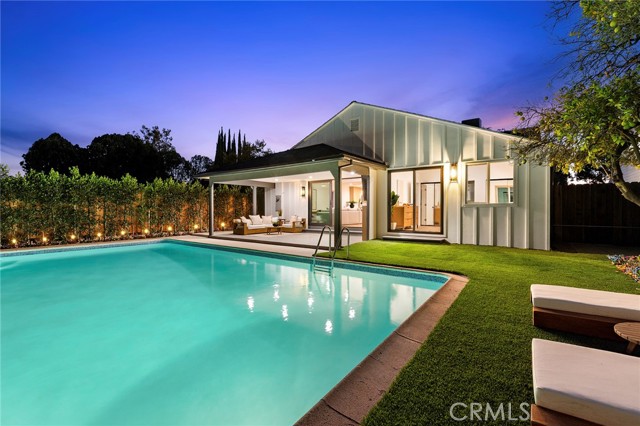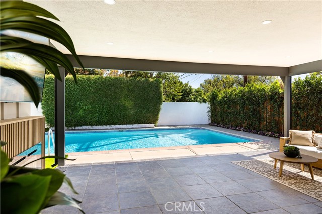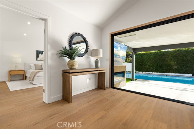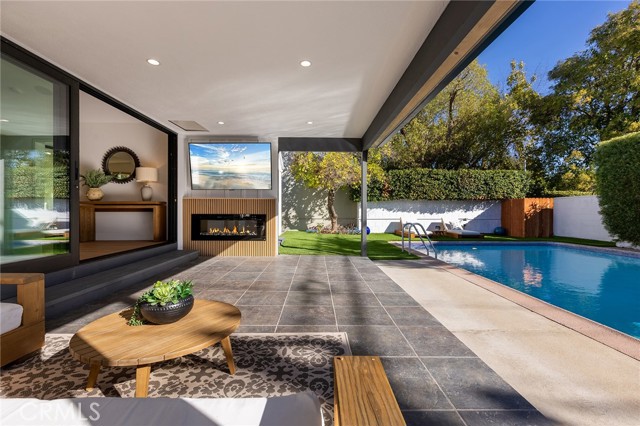 Welcome to your private retreat in Sherman Oaks, a stunning 3-bedroom, 2.5-bath luxury home on a serene corner lot with 2,041 square feet of beautifully designed living space. Behind the gates, you’ll find an open floor plan filled with natural light, cathedral ceilings in the living room and primary suite, and elegant honey oak wood floors throughout. The kitchen features custom cabinetry and high-end finishes that add warmth and sophistication. A large three-panel sliding glass door opens to a private backyard oasis with a sparkling pool, artificial turf, and a covered patio with a fireplace and TV—perfect for relaxing or entertaining friends and family. The property also includes a spacious front yard with artificial turf, providing plenty of room for outdoor gatherings, kids’ play, or hosting lively summer parties. This home is equipped with six surround sound speakers controlled by an iPad, recessed lighting throughout, and a finished garage with epoxy floors and built-in lighting, ideal for a gym, office, or game room. Surrounded by mature ficus trees that create total privacy, this home combines comfort, style, and smart design for effortless living. Adding even more appeal, this home is located near Kester Avenue Elementary School, a highly regarded neighborhood school known for its excellent academic programs, dedicated teachers, and strong sense of community.