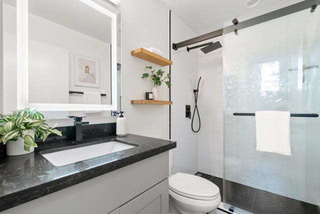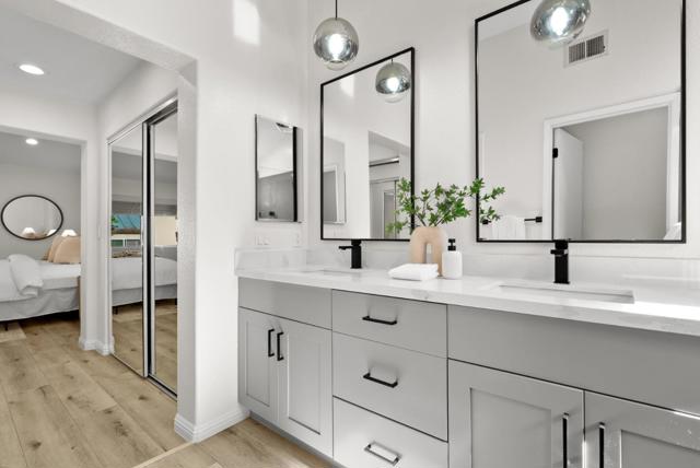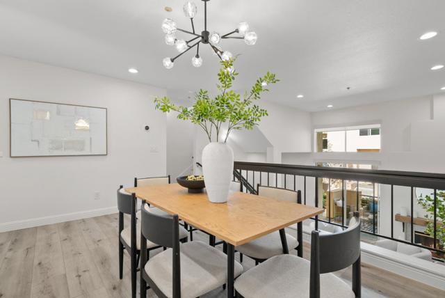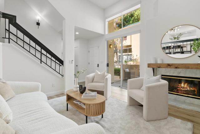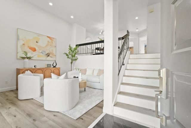 Redefining luxury at The Galleria in River Oaks. This thoughtfully designed home features soaring ceilings and floor-to-ceiling windows that fill the space with natural light. The inviting living area with a cozy fireplace opens to the front patio, ideal for relaxing or entertaining. The elegant dining area flows into the chefs kitchen with ceiling-height cabinetry, quartz island, full backsplash, wine fridge, and a skylight that brightens up the space with natural lights leading to the back patio. A same-level bedroom and fully upgraded bath offer style and functionality. The bonus loft is perfect for a study. Upstairs, the expansive primary suite impresses with vaulted ceilings, generous closets, and a spa-like bath with dual vanities and rainfall shower. Attached 2-car side-by-side garage with EV charger, in-unit laundry, central heating and AC (newly installed in 2023), reverse osmosis drinking water system and ample extra storage. The community features lush landscaping, a sparkling pool and plenty of guest parking. Prime location near River Oaks Plaza, Rivermark Village, Crescent Village, restaurants, coffee shops, parks, hiking trails, Nvidia, Cisco, Broadcom, BART, light rail and the Agnew School campus.