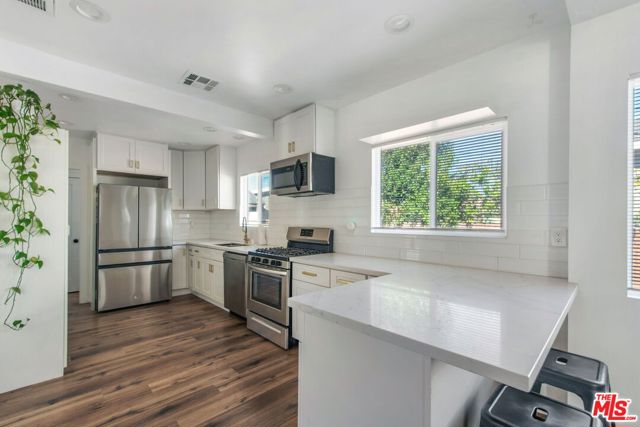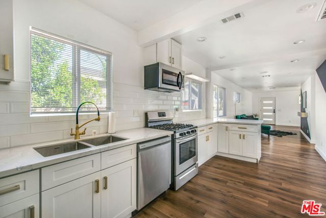 Welcome to 6567 5th Avenue, where contemporary comfort meets timeless charm in the heart of Los Angeles. This beautifully remodeled single-level Craftsman blends style, function, and flexibility with 3 bedrooms, 2 baths in the main house, plus a detached guest unit and a converted sound studio a $20,000 upgrade perfect for creatives, musicians, or anyone seeking a private workspace. Step inside to a bright, open layout designed for effortless everyday living. The inviting dining area flows seamlessly into the cozy living room and a modern kitchen with stainless-steel appliances and sleek finishes ideal for entertaining or relaxed family dinners. The front bedroom with an en-suite bath serves as the primary suite, while the secondary en-suite bedroom offers a dual-primary option or private guest space. The third bedroom is perfect for a home office, gym, or hobby room. Extensive renovations completed in 2020 include a new roof, central HVAC, updated plumbing and electrical, tankless water heater, motorized gate, astro turf, rain barrels, storage shed, and door camera system. Additional perks include a hot tub and newer kitchen appliances, making this home truly move-in ready. The detached guest unit features its own bathroom and space for a kitchenette ideal for extended family, visitors, or potential rental income. Outdoors, enjoy a fully fenced yard with a motorized gate and low-maintenance landscaping perfect for entertaining.Located on a peaceful tree-lined street, this home is minutes from SoFi Stadium, the Kia Forum, the Metro K Line, and the cultural and dining hubs of West Adams, Downtown Inglewood, and Leimert Park Village. Note: The half bath has been converted into a pantry (plumbing still in place). The current loan is assumable at approximately 3% inquire with the seller's lender. Per plan: Main House is 1153 sq ft and 354 sq ft