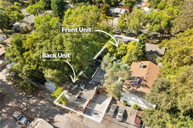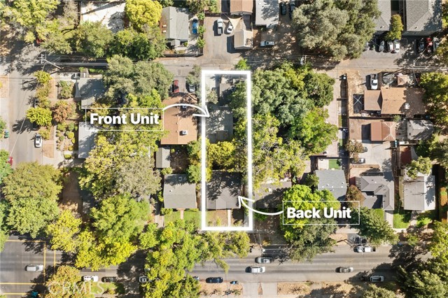 Step into vintage Chico charm with this beautifully maintained duplex, perfectly located on a tree-lined street near CSU Chico, downtown, and local shopping. The front 2-bedroom, 1-bath main house features original hardwood floors that fill every room with warm natural light and opens to a cozy backyard—perfect for relaxing or entertaining. Behind, a separate, move-in-ready 2-bedroom, 2-bath guest house offers privacy, spacious living, and off street parking accessed via a private alley. Whether you’re looking for multi-generational living, rental income, or a smart investment, this duplex combines vintage character, modern comfort, and a prime Chico location—truly a rare find with endless possibilities!