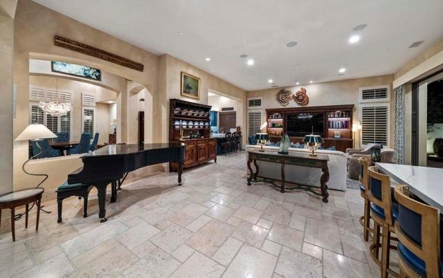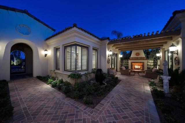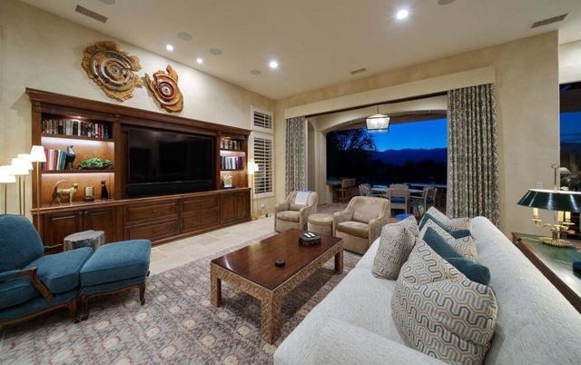 This exceptional Plan 923 home in the prestigious Toscana Country Club offers breathtaking, unobstructed western views of the desert mountains and the iconic Jack Nicklaus Signature Golf Course. Updated just four years ago, this stunning residence features a host of luxurious improvements including a state-of-the-art AV and electric system, fresh paint, new countertops, and various other high-end enhancements. Inside, the home features a charming layout with textured walls and stunning wood beams across the ceiling, adding warmth and character to the space. The gourmet kitchen is a true showpiece, with uniquely blue cabinetry and elegant white and grey quartzite countertops. The spacious primary suite offers a serene retreat with a large sitting area and a lavish en-suite bath, while the versatile guest spaces, including a guest house and additional rooms in the main home, provide ultimate comfort for family and friends. With upgraded AV and electric systems throughout, this home is designed for modern living and offers a seamless blend of luxury and practicality. Whether you're enjoying the spectacular views or relaxing in the beautifully appointed spaces, this remarkable residence provides the perfect setting for both comfort and style.