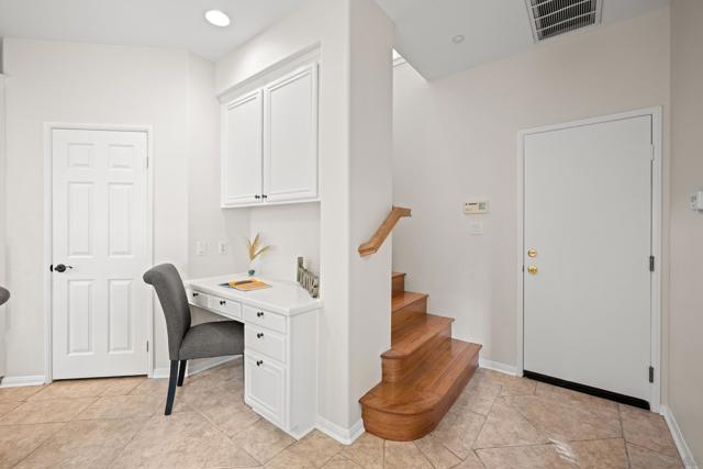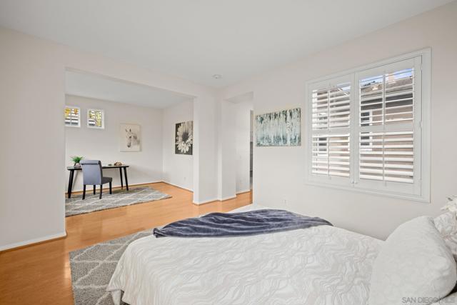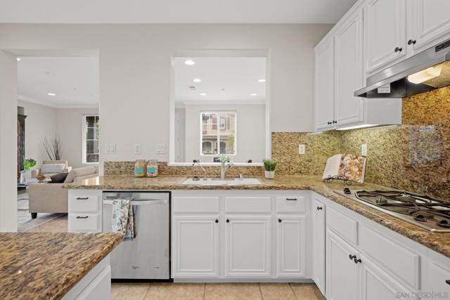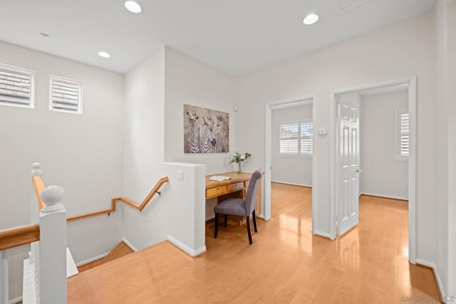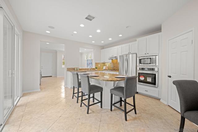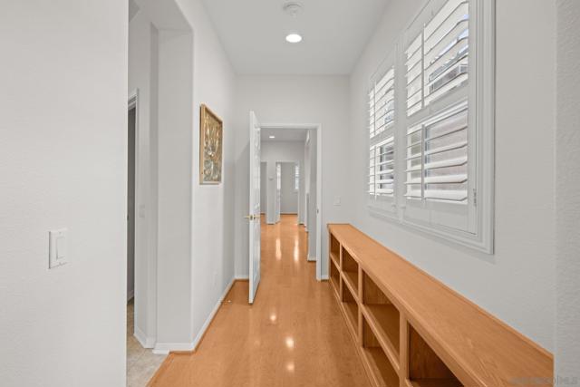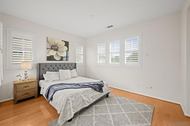 This bright & spacious former model still shows like new. Charming curb appeal with front porch. Large Living/Dining room open floorplan with cozy fireplace and built in cabinet, lots of windows. Gourmet kitchen with stainless steel appliances, granite counters, lots of cabinets, pantry, and built in desk. Upstairs: Primary suite with walk in closet, luxury bath, & office/retreat area. 2 more large bedrooms. Hardwood floors. built in desk, cabinets & shelves. Laundry room-washer/dryer included. Central heat & A/C. Solar system!(not leased)= low energy costs. Low HOA fees- $272/month! Big 2-car garage. Enjoy relaxing and entertaining on the large private patio/side yard. Prime location- walk to parks, pool, schools, and close to shops & restaurants. Enjoy all that the desirable 4S ranch community has to offer.