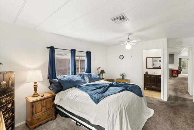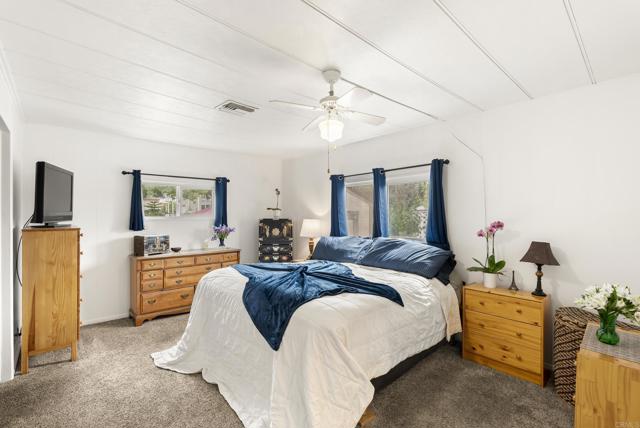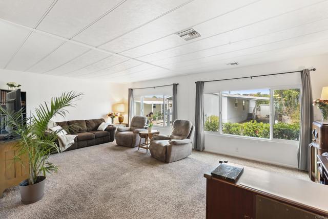 Bright 2BD/2BA + Bonus Room in a Peaceful 55+ Gated Community! Enjoy a private large fenced backyard with shady trees, a relaxing porch, two sheds (6x8 & 8x12), and covered parking for three cars! Beautifully maintained home with a spacious primary suite (12x16) featuring an ensuite bath & walk-in closet, a second bedroom (12x11), and a bonus room (12x12) that can easily serve as a third bedroom or office. Light-filled floor plan, dual-pane windows and central air & heat. Includes newer dishwasher (2025), water heater (5 yrs old), and in-unit washer/dryer. Located in a pet-friendly 55+ gated community offering resort-style amenities: clubhouse, pool, spa, gym, BBQ area, billiards, shuffleboard, RV/boat storage, and a full calendar of social events. Great location near Hwy 67, I-8 & Hwy 52, with a bus stop right at the front gate. Move-in ready — senior living at its best!