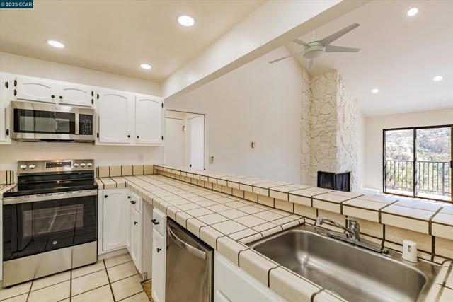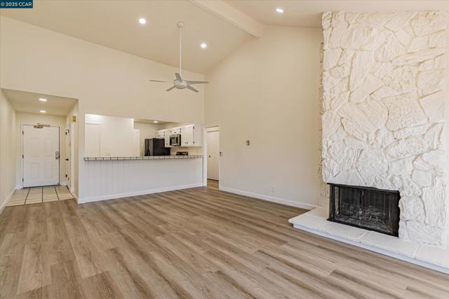 Views! Views! Stunning Penthouse end unit with views from every window, beautiful stone fireplace and balcony! This condo has been meticulously updated with updated bathrooms, new rubbed oil hardware on doors, ceilings scrapped and interior paint complete! LED can lights added throughout on dimmer switches, luxury vinyl plank, new baseboards. Kitchen cabinets professionally painted, new oven/cooktop, also includes refrigerator, new dishwasher, new wine fridge, new built in microwave! Primary suite with slider and large walk in closet! Bathrooms have new vanities with quartz counter tops, new mirrors, new toilets and custom accent lighting! In unit laundry with washer and dryer included. This is a rarely available special unit! Walk to CSUEB!