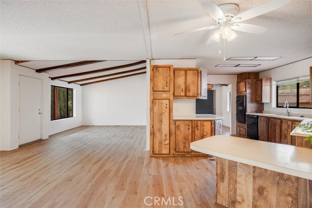 Own the land—NO SPACE RENT! Located in Rancho Paso, a 55+ community park, this spacious 3-bedroom, 2-bath home offers approximately 1,756 square feet of thoughtfully designed living space with warm wood paneling throughout. Step inside to a bright, open-concept layout featuring a sun-filled living room and airy, inviting atmosphere. The home features newly installed laminate wood flooring in the main living areas and bathrooms, new HVAC, newer cooktop, stove, refrigerator, The kitchen is generously sized with abundant storage. A large center island provides ample workspace for cooking and entertaining, while a cozy sitting area beneath a picture window creates the perfect spot for casual dining or morning coffee. The spacious laundry room provides plenty of shelving and conveniently opens to the side yard. The carpeted private primary suite is a serene retreat, offering a large closet and an en-suite bathroom with dual sinks and generous storage. Two additional carpeted bedrooms and a full bath provide flexibility for guests, hobbies, or a home office. Enjoy the outdoors on the inviting covered front porch—ideal for tranquil mornings or colorful evening sunsets. Covered parking for two vehicles is available beneath the carport, with additional space for extra parking if needed. The lot is approximately 2,000 square feet larger than neighboring properties. The low-maintenance exterior features a large storage shed tucked away at the rear, plus a side yard perfect for gardening or outdoor pets (up to two pets under 50 lbs. each allowed). Rancho Paso is celebrated for its friendly atmosphere and vibrant lifestyle. Amenities include paid sewer and trash services, two clubhouses with full kitchens and bathrooms, a swimming pool, a library, scenic parks with walking paths and benches, and a full calendar of social events—from summer water aerobics to Bunco nights and monthly gatherings. The community is conveniently located close to shopping, dining, and essential services, with easy freeway access. This property combines comfort, convenience, and full land ownership—all in the heart of Paso Robles wine country. If you’ve been looking for low-maintenance living with exceptional amenities, this home truly delivers.