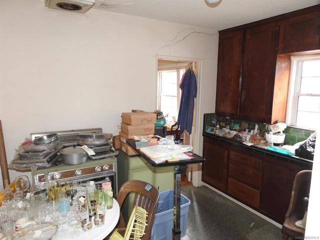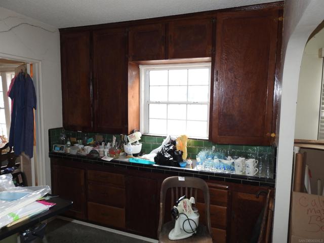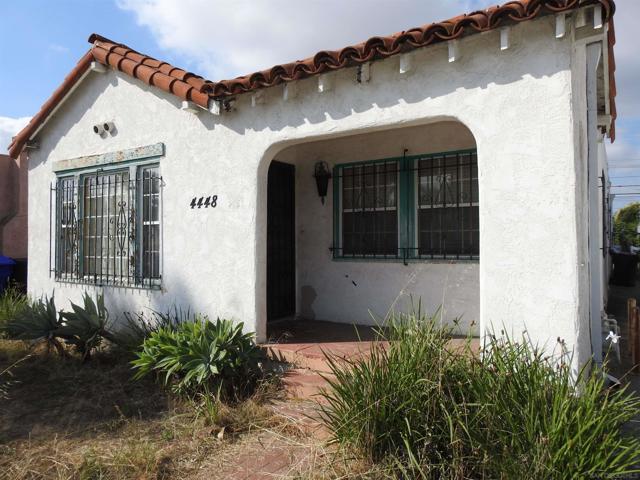 Normal Heights early century Spanish style 1,312 square feet cottage with great quite location, detached garage and large back yard. Nestled in between the 15 and 805 freeways and Adams Ave. and El Cajon Blvd, in a desirable walkable neighborhood. This cozy bungalow built in 1932 offers a covered porch to living room with original 1930’s front door, to living room with coved beam ceilings and fireplace with many original light fixtures. Archway to dining room which leads to hallway with one bath with classic tiled tub. Two bedrooms - King Bed fits nicely in the primary bedroom while the second bedroom opens to a walk through third bonus room with built in bookcases and access door to backyard. The home is set on a Set on a generous 6,235 sq./ft. RS-1-7 lot with expansive backyard that is perfect for hosting gatherings with family and friends or future expansion or ADU. Detached one car garage with plenty of extra driveway off street tandem parking for cars, RV, etc. Major fixer that offers incredible potential for investors or buyers ready to renovate. Will make a great project for someone that wants to preserve a historic home.