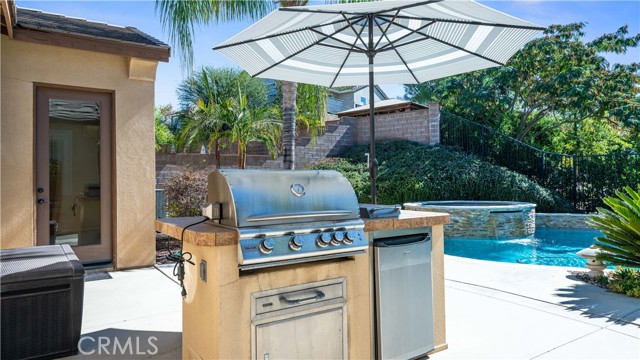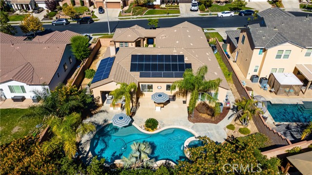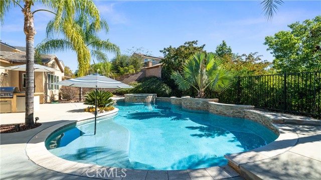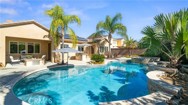 Welcome to this beautiful single-story home located in the prestigious gated community of Sycamore Hills within Sycamore Creek in Corona. This stunning property features a detached casita and fully paid-off solar, offering luxury, efficiency, and flexibility. The spacious main home includes three retreat-style bedrooms, each with its own private ensuite bathroom, plus a separate half bath for guests. This is a rare and highly desirable feature that provides comfort and privacy for family and guests. The detached casita offers an additional bedroom and full bath, making it the perfect space for an aging parent, guest suite, home office, gym, or even a creative studio. And at the heart of the home is an expansive great room featuring a gourmet kitchen with a large center island, granite countertops, stainless steel appliances, a wine refrigerator and beautiful cabinetry. And step outside to your private backyard oasis with a beautiful in-ground pool and spa featuring pebble-tech finish. You’ll definitely enjoy outdoor living at its best with the California-style covered patio, a built-in gas barbecue, fire pit, raised planters, and mature trees. This space is perfect for entertaining or simply relaxing at home. Plus residents of Sycamore Creek enjoy resort-style amenities, including a large community pool and spa, pickleball courts, fitness center, clubhouse, walking and hiking trails, skate park, soccer and baseball fields. Don’t miss this rare opportunity to own a one-of-a-kind home that combines luxury, comfort, and privacy in one of Corona’s most sought-after neighborhoods.