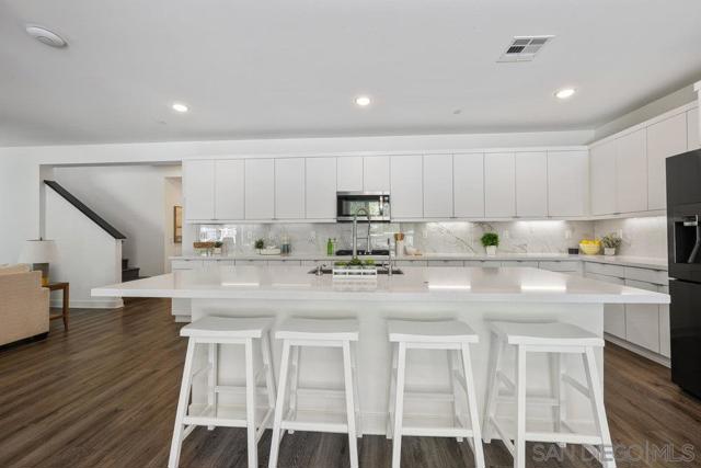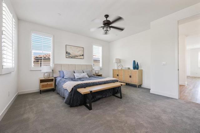 Experience elevated living in this luxurious home in the sought-after Weston community of Santee, where modern design meets breathtaking views. Inside, the open-concept layout is filled with natural light and high-end finishes throughout. The main living areas feature luxury vinyl plank flooring, plantation shutters, and designer touches at every turn. The chef’s kitchen boasts a striking marble backsplash, abundant storage, and seamless flow into the dining and family rooms, each opening to the outdoors through expansive bi-part sliding glass doors. A private downstairs suite with its own bath offers ideal space for guests or a home office. Upstairs, a versatile oversized loft provides the perfect second living area. The primary suite is a true retreat, showcasing a spa-inspired bath with a soaking tub, oversized walk-in shower, dual vanities, and a generous walk-in closet. The secondary bedrooms share a Jack & Jill bathroom. The laundry room is conveniently located on the second floor as well. Outside, live the California dream. Socialize with your neighbors, enjoy the views or watch the stars from your elevated sitting area in the front yard. The backyard features a California Room, gazebo with fire pit, barbecue, and enhanced privacy with the scenery of the natural hill. Life is further enhanced with paid for solar and the 13-stage reverse osmosis, alkaline water system. This remarkable home pairs style, comfort, and convenience —schedule your private tour today. Enjoy nearby Santee Lakes. Close to schools, restaurants, shopping, entertainment, and recreation.