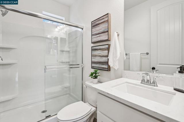 Tucked against open space with stunning views of the Martinez hills, this beautifully updated townhouse blends modern design, thoughtful functionality, and an unbeatable location. Situated near coffee shops, restaurants, shopping, and a movie theater—with easy freeway access—this home offers both comfort and convenience. Solar panels and an energy-efficient ECOBEE system are an added bonus. The entry level welcomes you with a functional landing area and direct access to a spacious tandem garage featuring an organized built-in storage system for bikes and more. The main level is an entertainer’s dream, showcasing a stylish island kitchen with sleek quartz countertops and stainless-steel appliances. The adjacent family room is open, light-filled, and flows seamlessly onto a private balcony with sweeping views of the surrounding hills. A third bedroom on this level offers flexibility—perfect for a home office or guest room. Upstairs, the primary suite is a true retreat, featuring a custom ELFA closet, dual sinks, a large walk-in shower, and more of those breathtaking views. Ideally located near some of Martinez’s best outdoor amenities, including hiking and biking trails, this home truly has it all. Come see it for yourself—you’ll fall in love.
