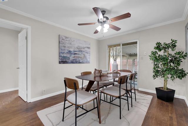 This beautifully updated single-story home offers 1,594 sq. ft. of living space on a 5,000 sq. ft. lot, blending modern comfort with classic charm. Step into the inviting living room featuring refinished hardwood floors and a beautiful fireplace, perfect for cozy evenings. The updated kitchen boasts stone countertops, new stainless steel appliances, stylish cabinetry, and tile flooring, all seamlessly opening to the dining area — ideal for family gatherings and entertaining. This spacious home features four bedrooms and two full bathrooms, providing ample room for family or guests. Enjoy the fresh interior paint throughout, new carpet in select areas, and thoughtful upgrades that make this home move-in ready. Outside, the hardscaped front yard offers great curb appeal, while the backyard features fruit trees, a covered patio perfect for entertaining, and side access with plenty of off-street parking plus a detached garage. Located within walking distance to Logan High School, shopping, and restaurants, this Union City gem offers convenience, comfort, and community — all in one desirable location!