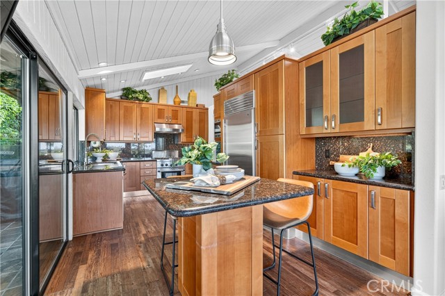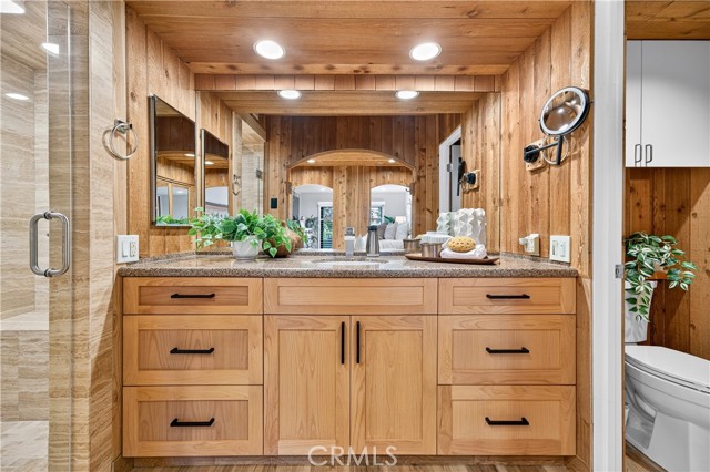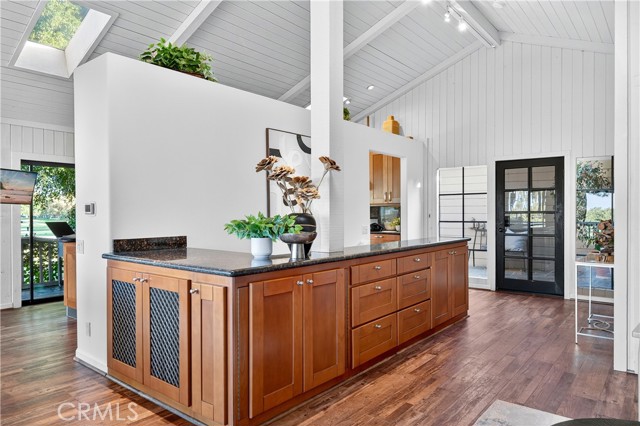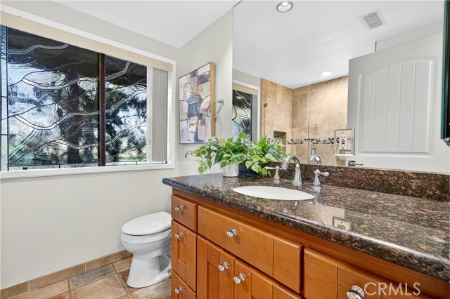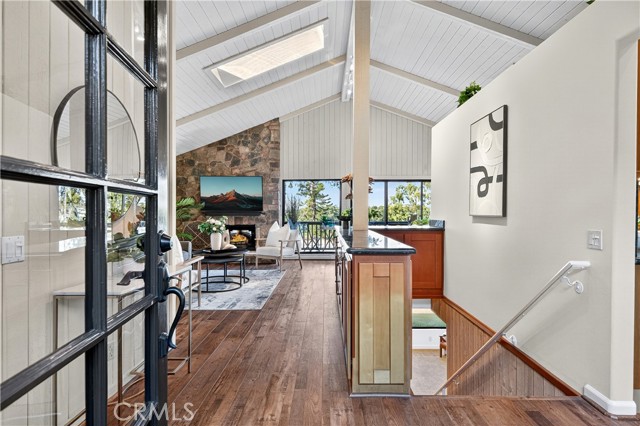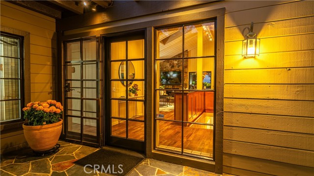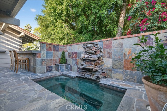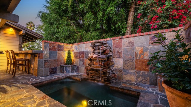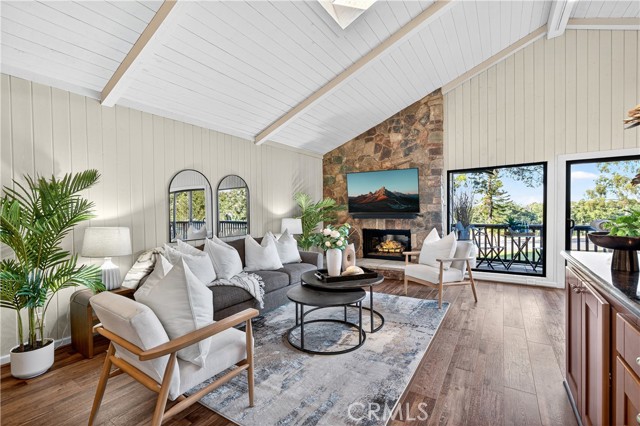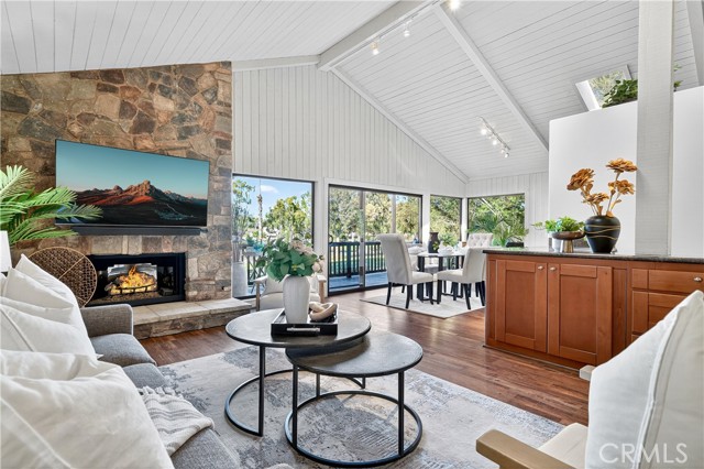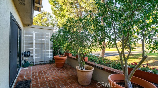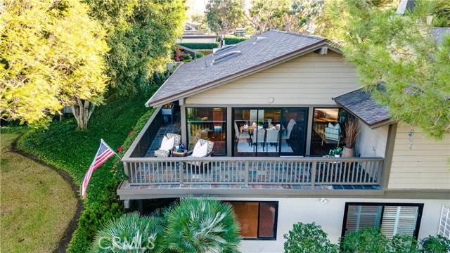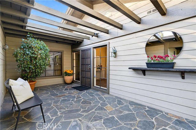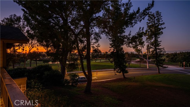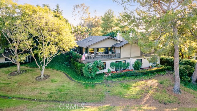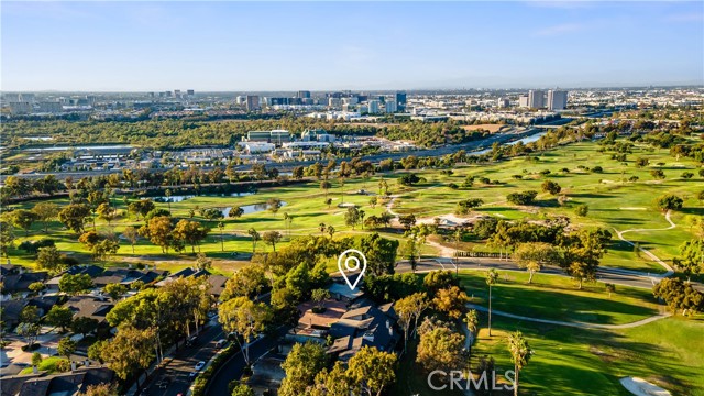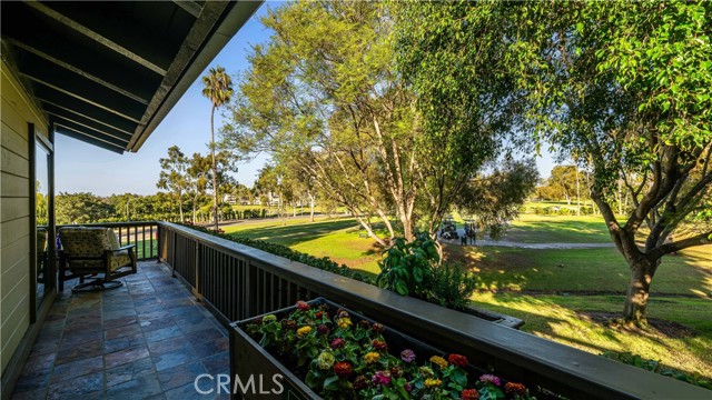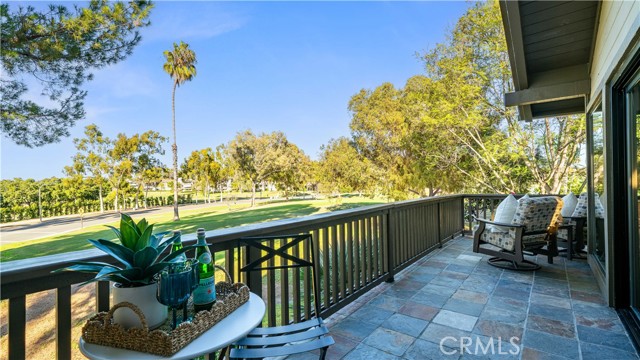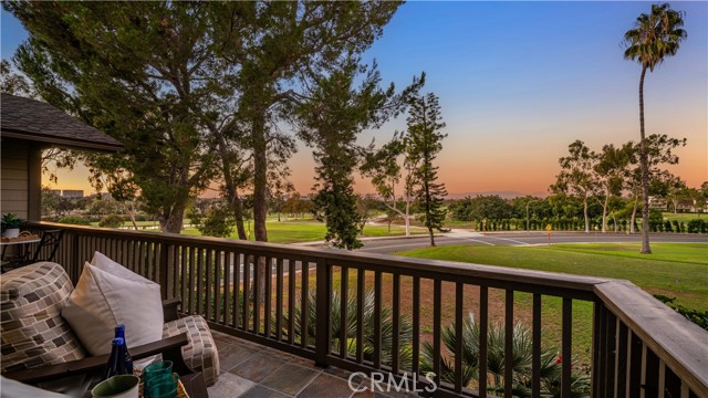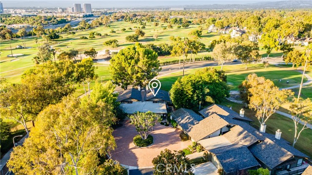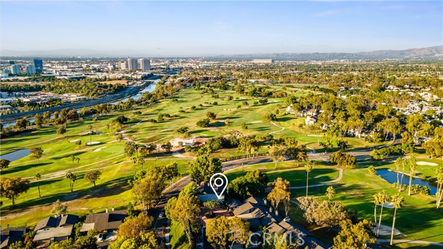 On a premium corner lot at the end of a quiet cul-de-sac, this beautifully remodeled home offers panoramic views of the golf course, ponds, city skyline, and sunsets, including a direct overlook of the 13th-hole tee-box. Step through the front gate into a tranquil, private courtyard with warm lighting, featuring a custom heated spa, a rock waterfall, and a bar-height counter overlooking lush greenery—ideal for entertaining or unwinding. Inside, the open floor plan boasts cathedral ceilings, dual-pane windows, and abundant natural light. The living room opens to the dining area, while the remodeled gourmet kitchen—with top-of-the-line stainless steel appliances, granite counters, custom cabinetry and recessed lighting—flows seamlessly into the dining area. Sliding glass doors in both the dining room and kitchen lead to a wrap-around deck extending around the back and side of the home, perfect for indoor-outdoor living. The primary bedroom features a sliding glass door to the back patio with golf course views. It includes a spacious ensuite bathroom with a vanity area, a separate shower room, and a privacy door to the toilet, along with a cozy sitting area and mirrored closets. All bedrooms and bathrooms have recessed lighting, and each bathroom has been beautifully remodeled. Additional highlights include custom cabinetry around the stairs, a remodeled fireplace, and finished storage areas. Recent upgrades feature a new 50-year roof and tenting completed in Summer 2023, with the HOA special assessment fully paid. Conveniences include a direct-access two-car garage and an indoor laundry area. Residents enjoy access to two community pools and spas, with association dues covering water, trash, and exterior maintenance. Ideally located in the esteemed Irvine School District, including University High, and just minutes from UCI, William Mason Park, John Wayne Airport, Newport Beach, and Fashion Island. This home offers refined, move-in-ready living with spectacular golf course views and timeless appeal.